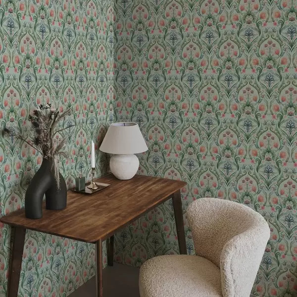 Wallpapers Symmetrical floral ornament, mint-cream palette Nr. a00827v1