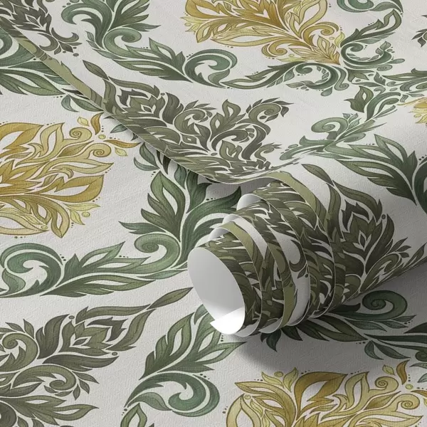 Wallpapers Damask with green scrolls on a light ground Nr. a00828v1