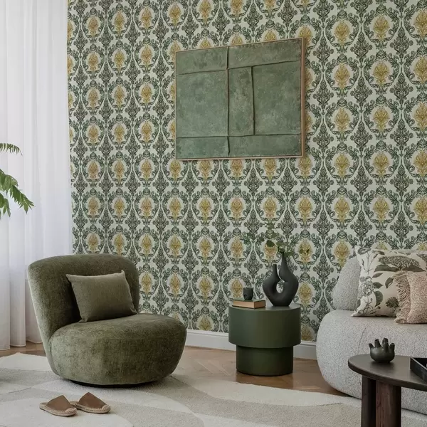 Wallpapers Damask with green scrolls on a light ground Nr. a00828v1
