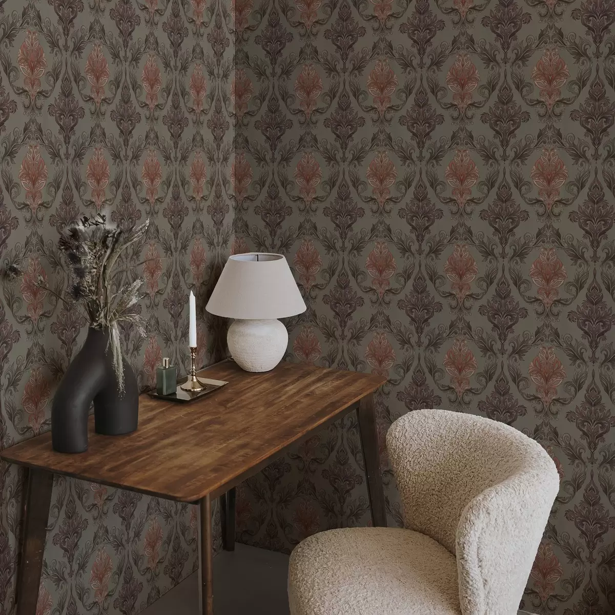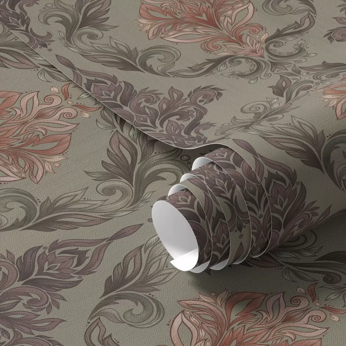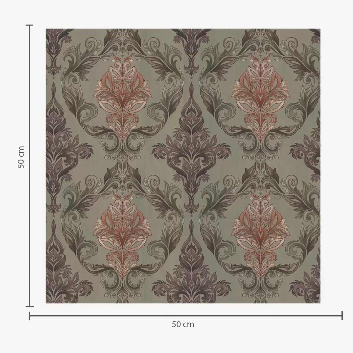 Wallpapers Terracotta damask on muted olive ground Nr. a00828v3