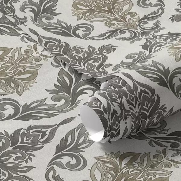Wallpapers Damask on light ground, olive-bronze accents Nr. a00828v6