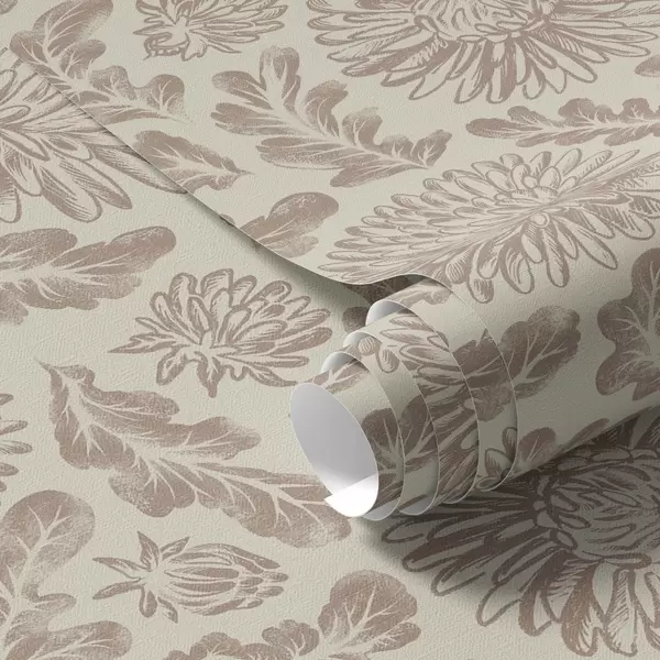Wallpapers Chrysanthemums and oak leaves in soft beige-brown Nr. a00840