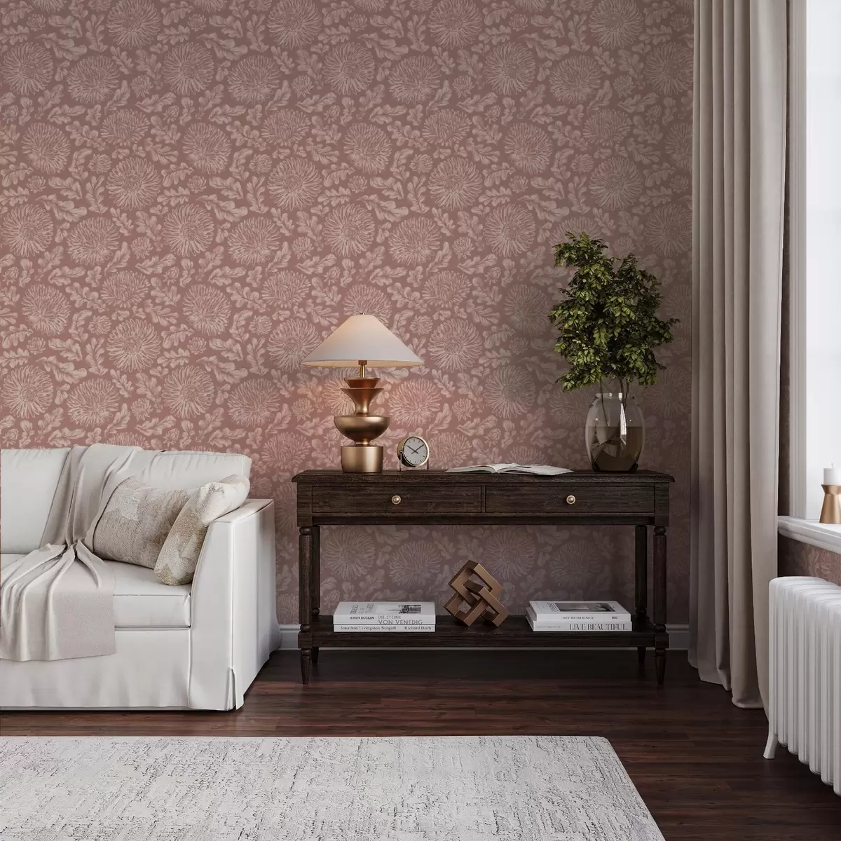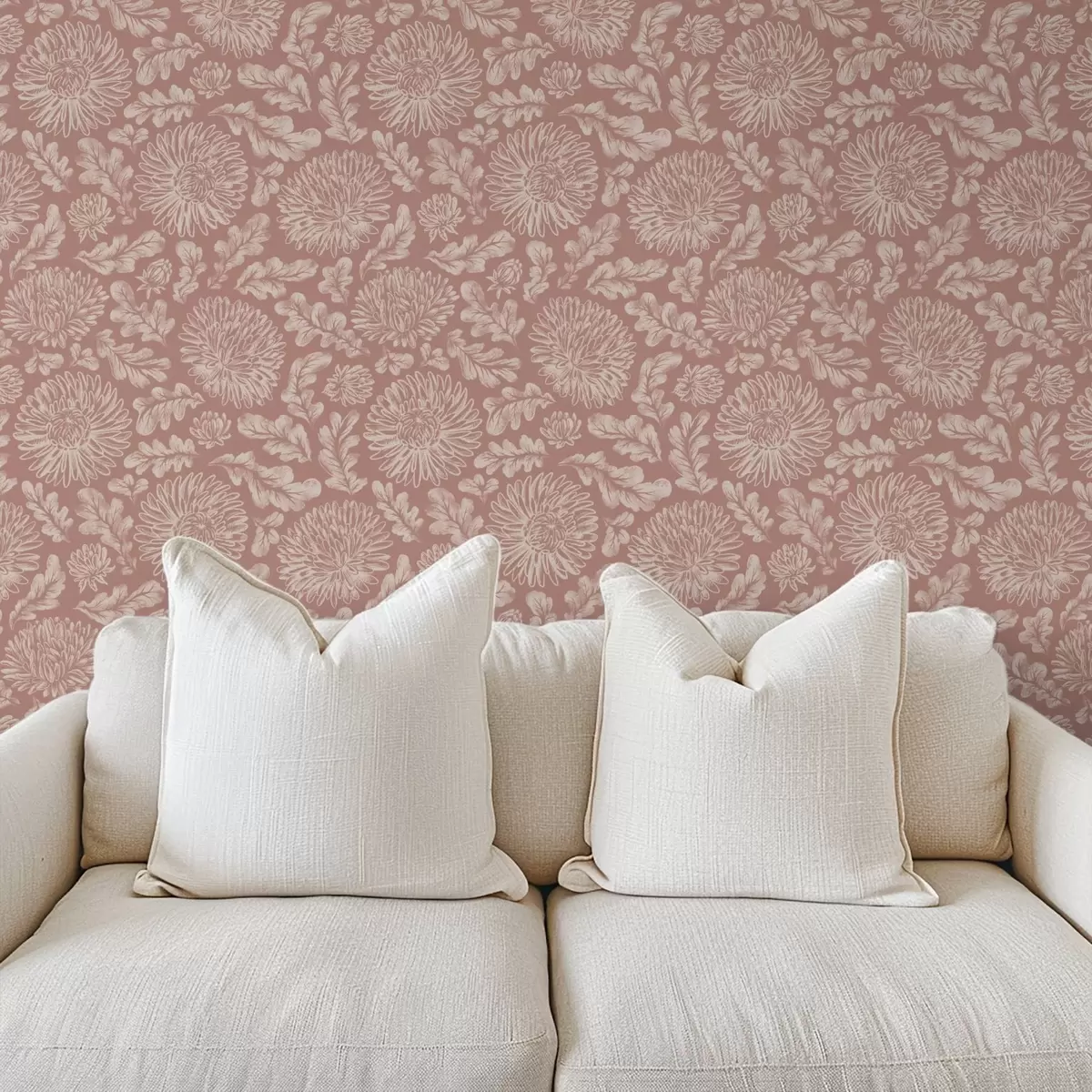 Wallpapers Cream chrysanthemums on dusty pink Nr. a00840v2