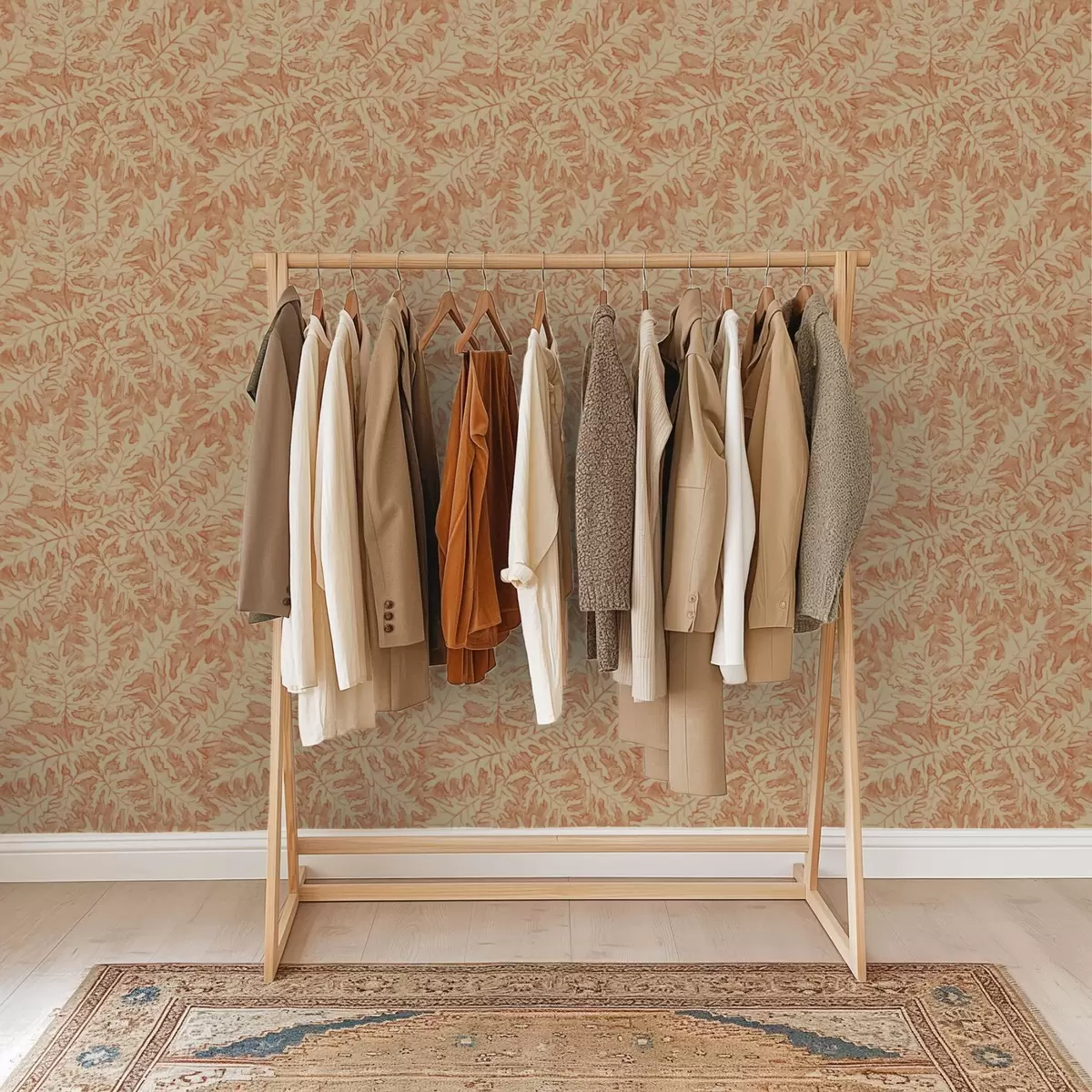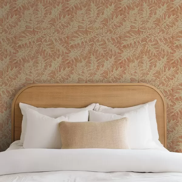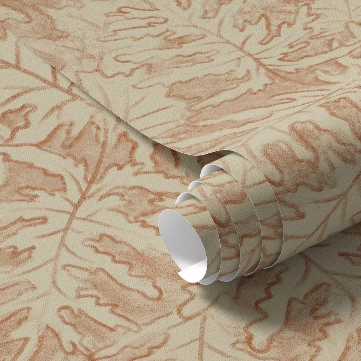 Wallpapers Large oak leaves in terracotta on cream Nr. a00846