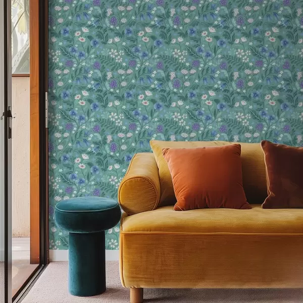 Wallpapers Wildflowers and berries on soft mint background Nr. a00849