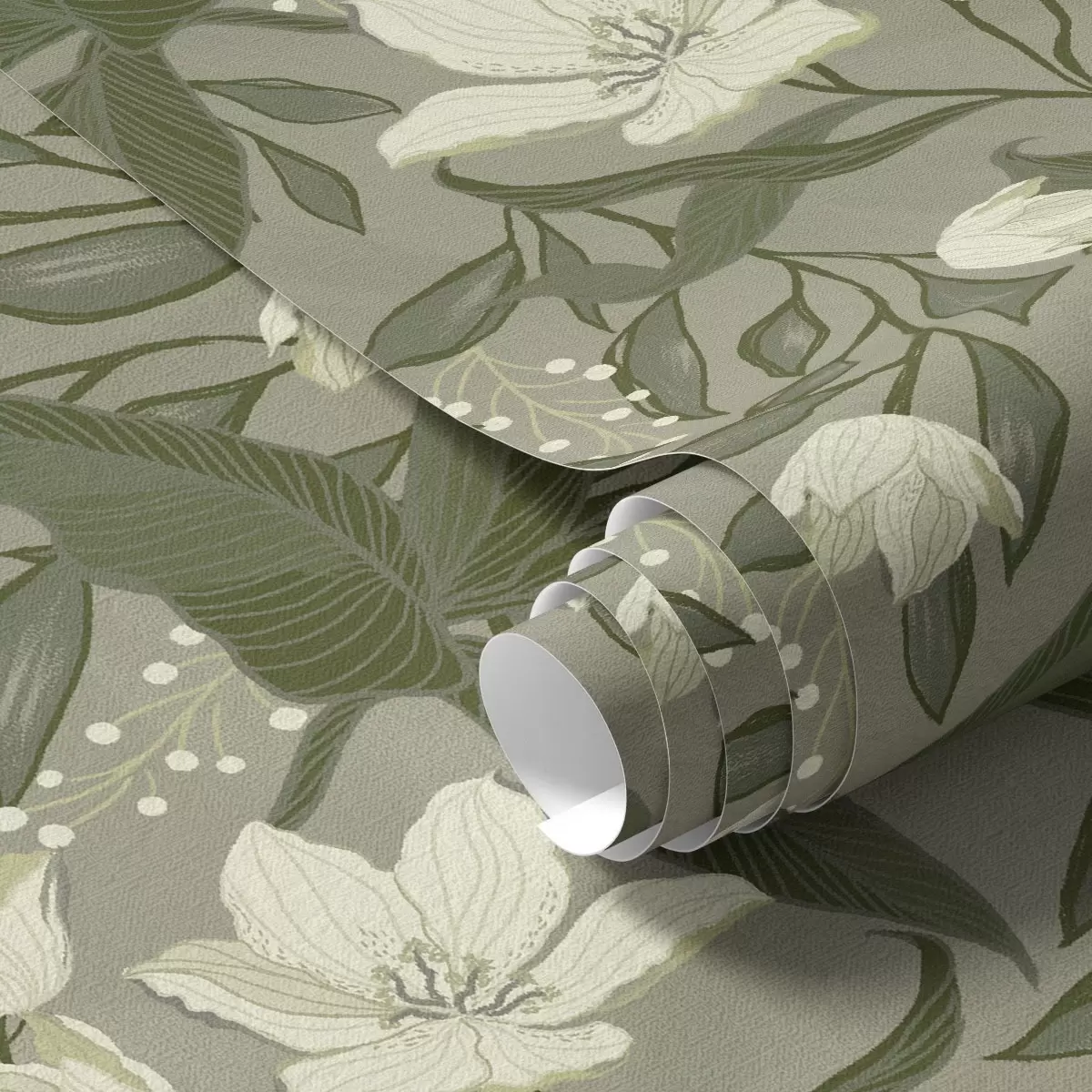 Wallpapers Pale lilies and foliage on gray-olive Nr. a00854