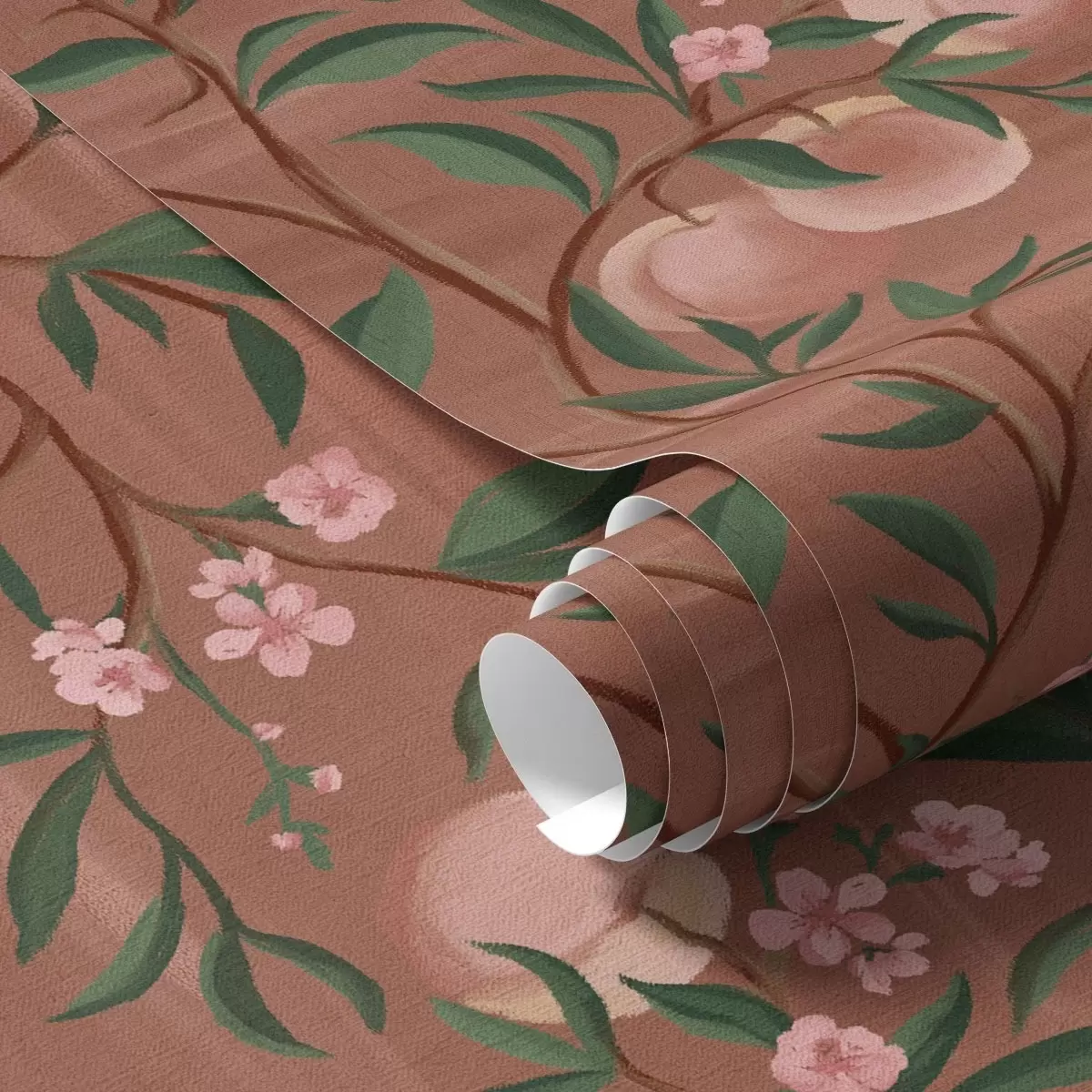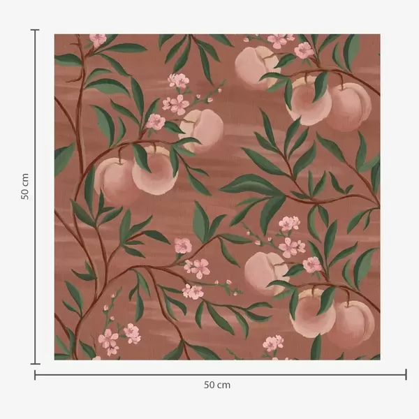 Wallpapers Peaches on branches with pink blossom, terracotta ground Nr. a00856
