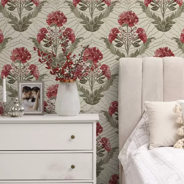 Wallpapers Large red peonies with graphic backdrop, cream ground Nr. a00857