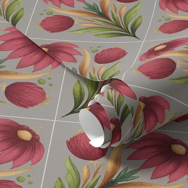 Wallpapers Symmetrical floral ornament on gray background with diagonals Nr. a00869