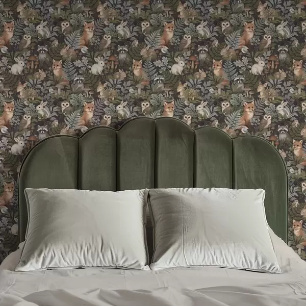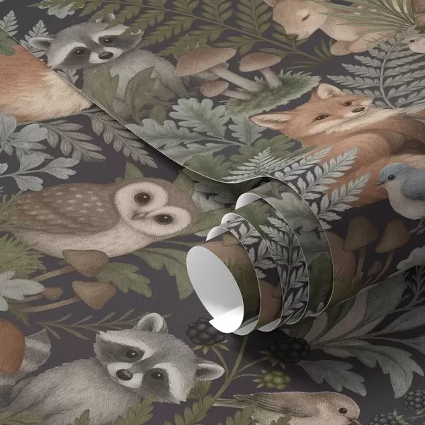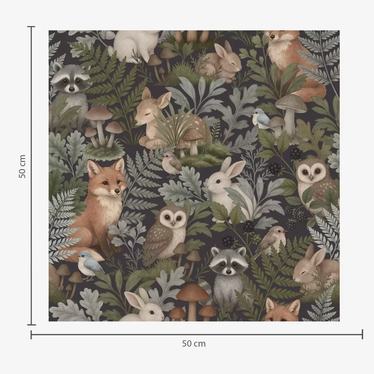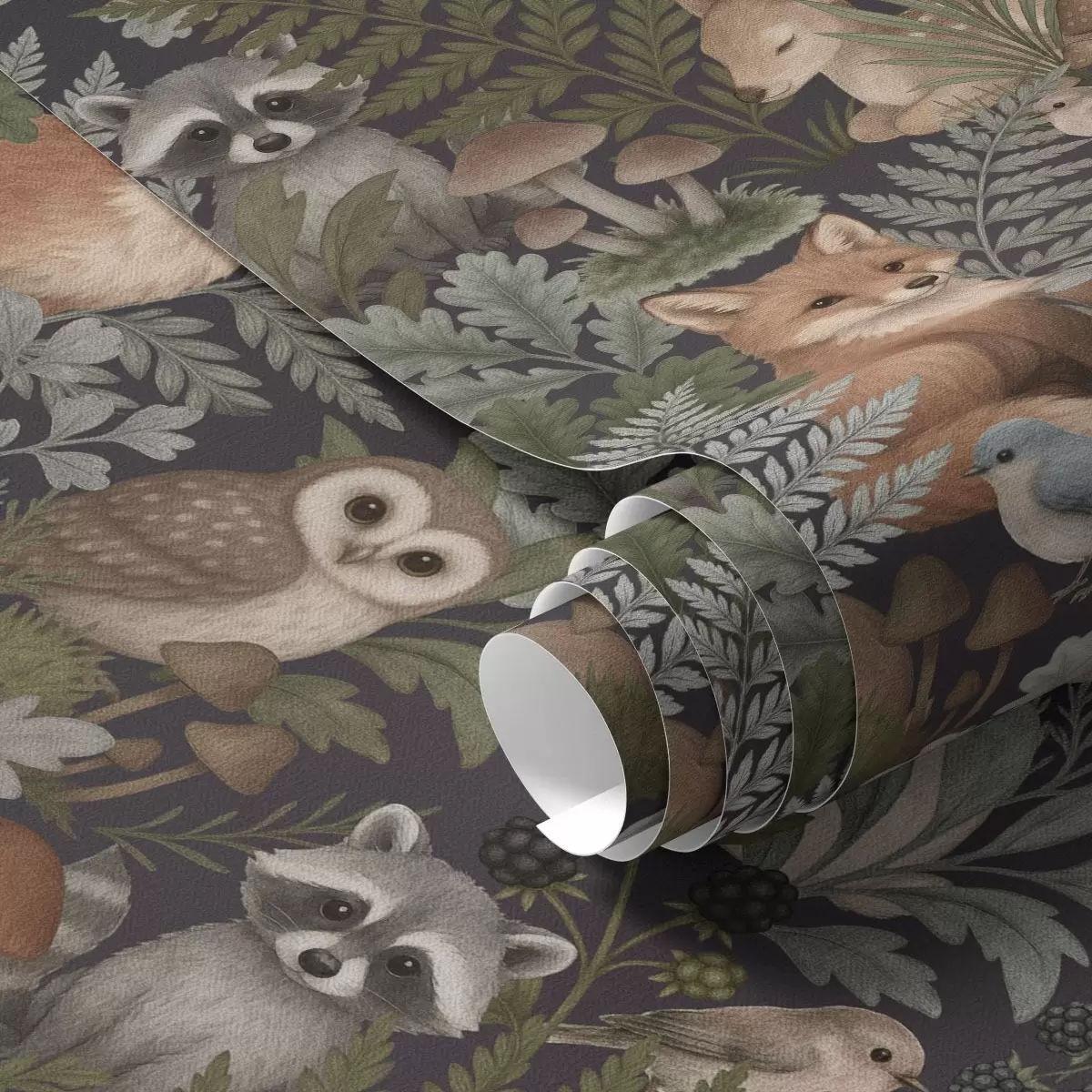 Wallpapers Woodland animals and ferns on deep charcoal Nr. a00880