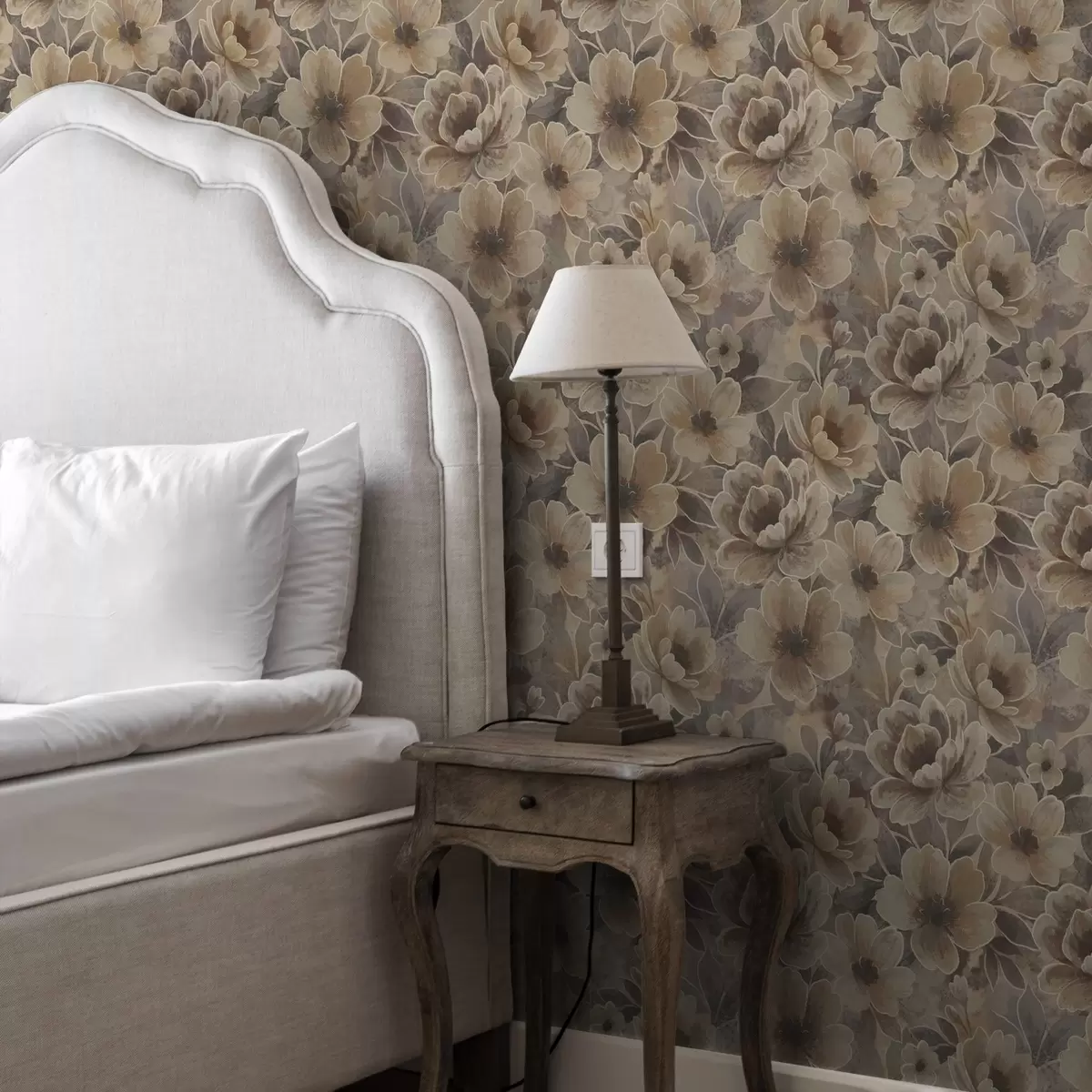 Wallpapers Painterly beige flowers on a smoky abstract background Nr. a00884