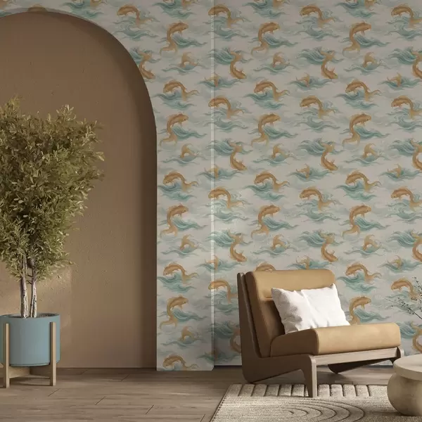 Wallpapers Amber koi fish swimming among soft turquoise waves Nr. a00894