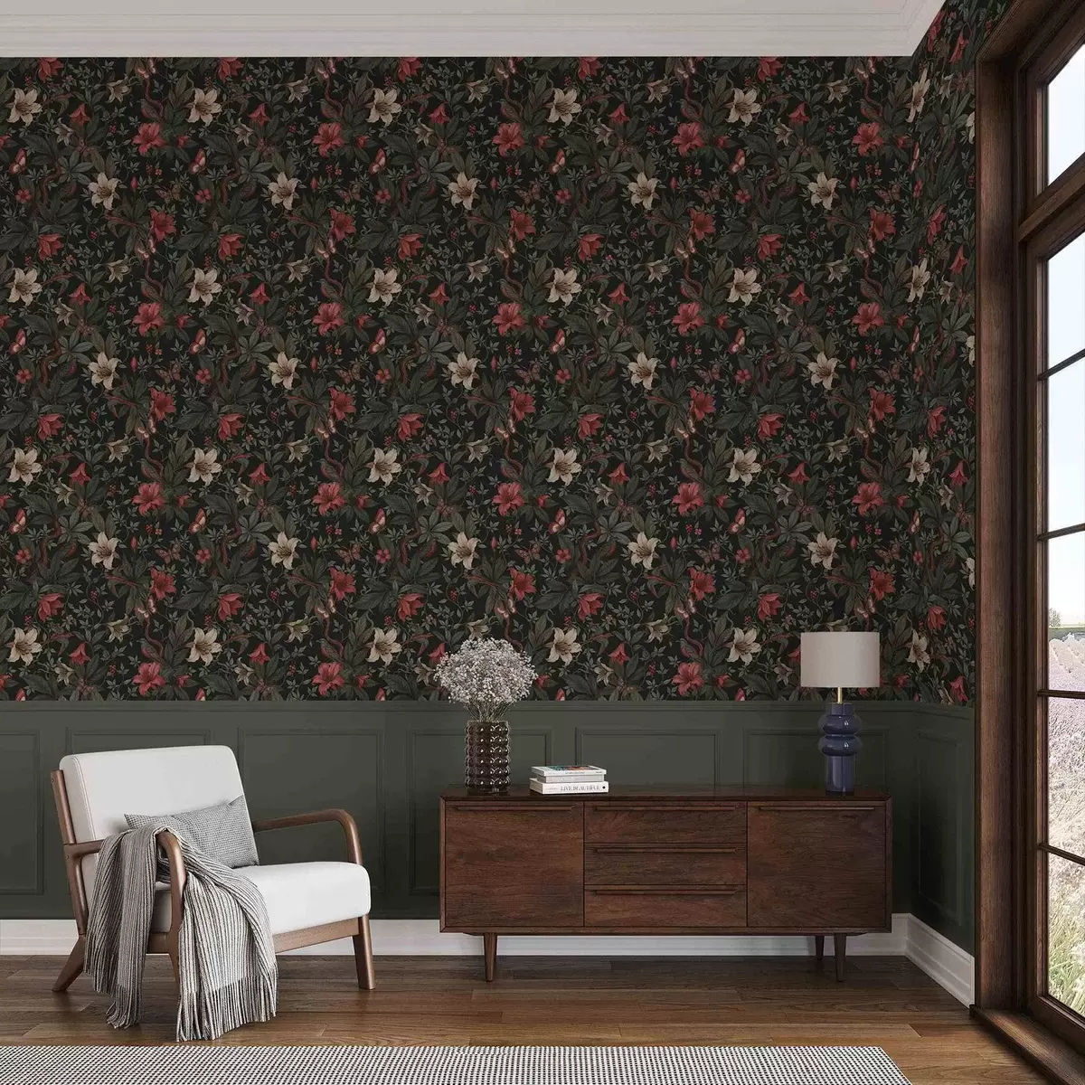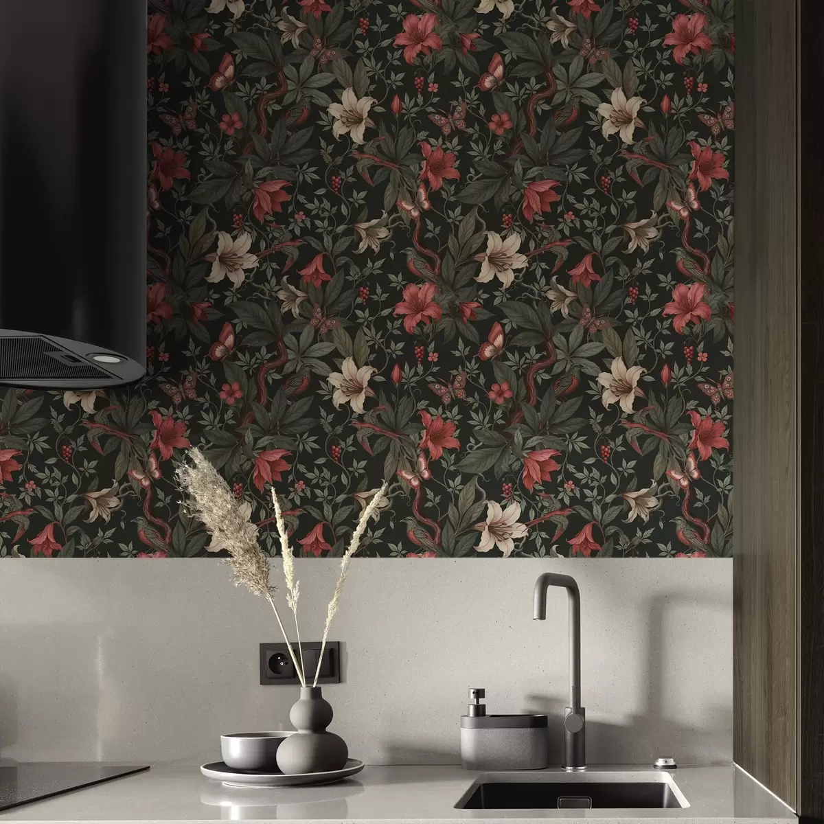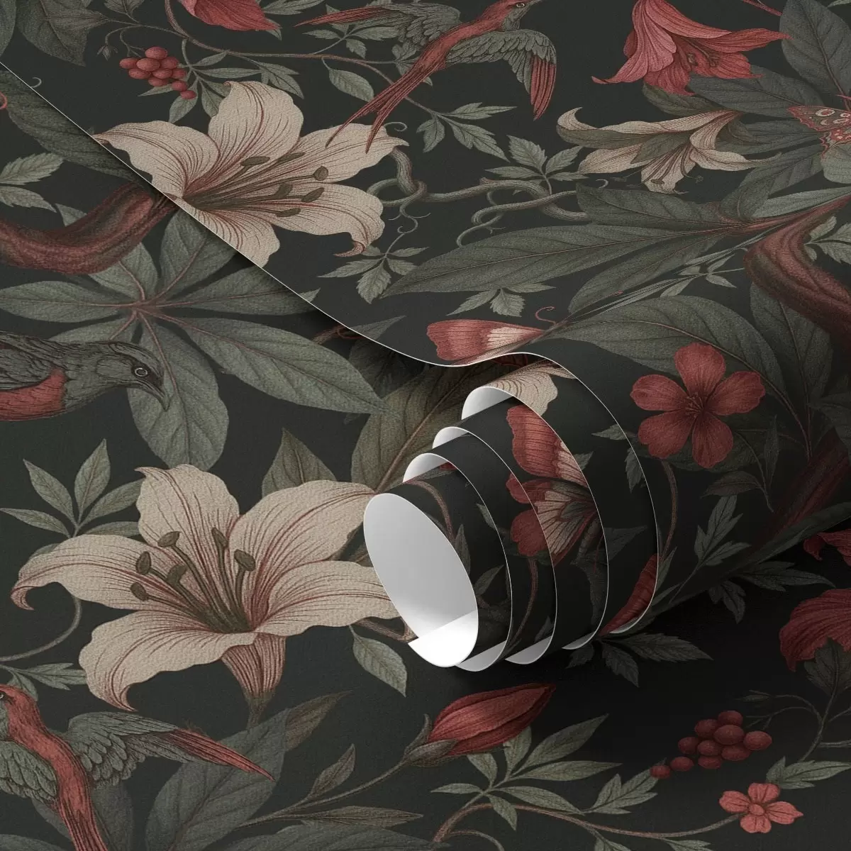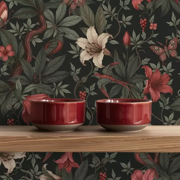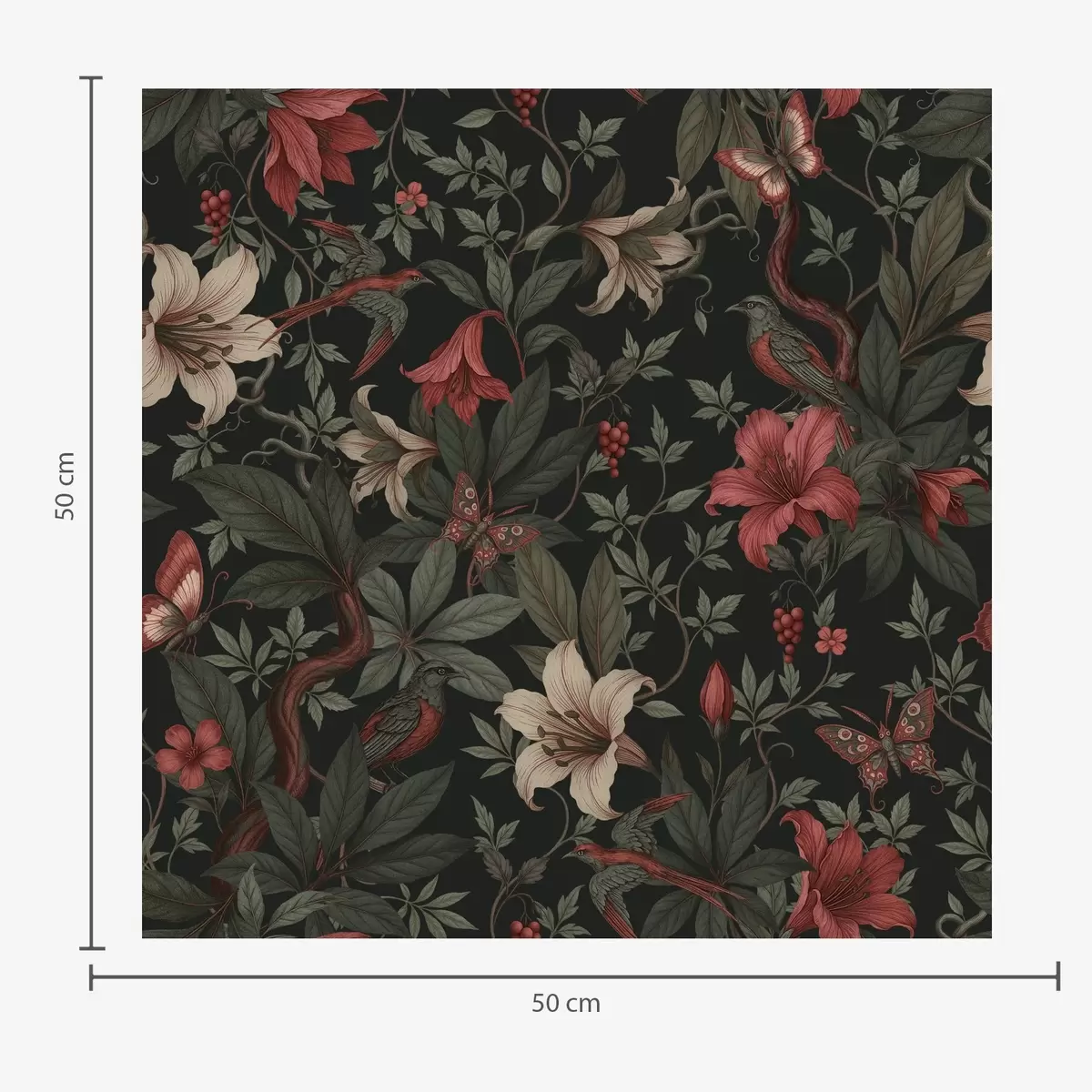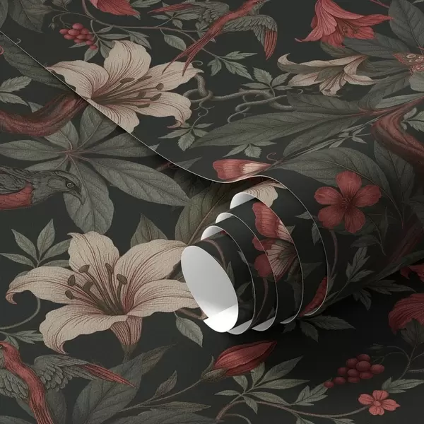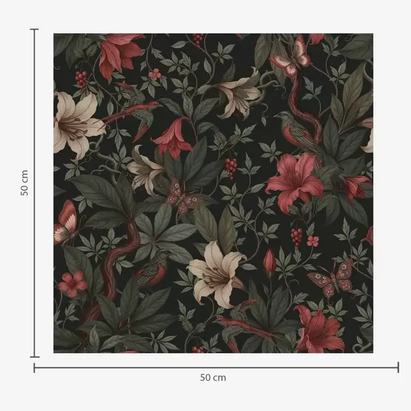 Wallpapers Dark jungle florals with birds and butterflies Nr. a00895