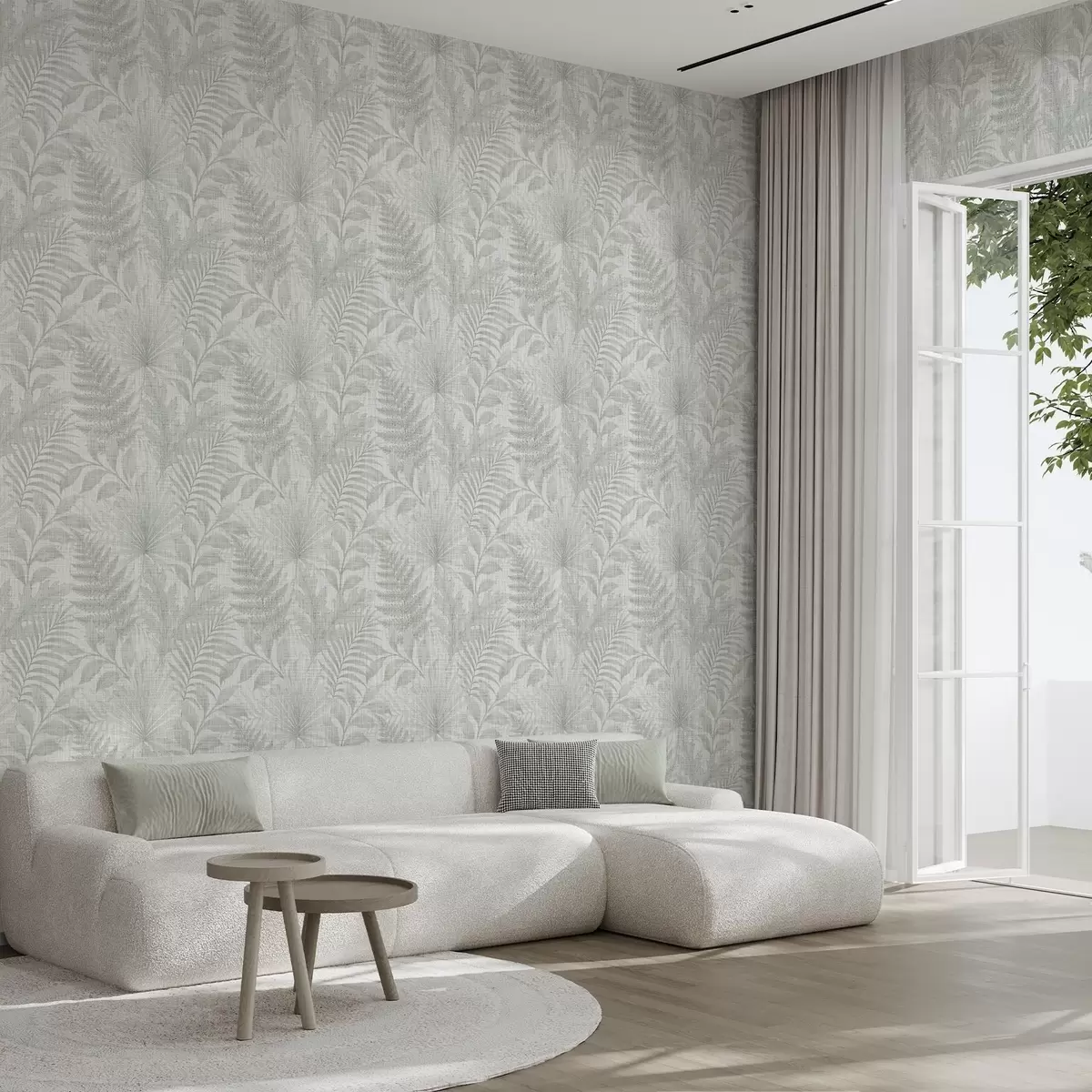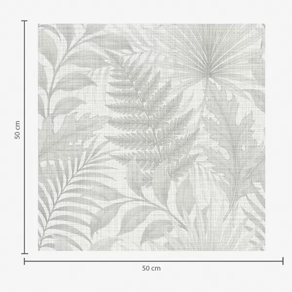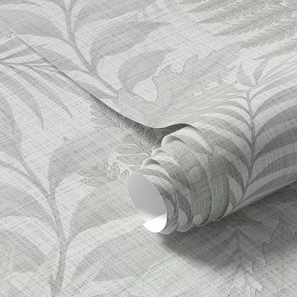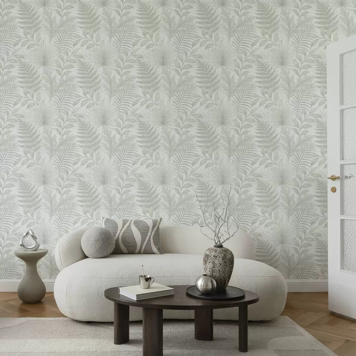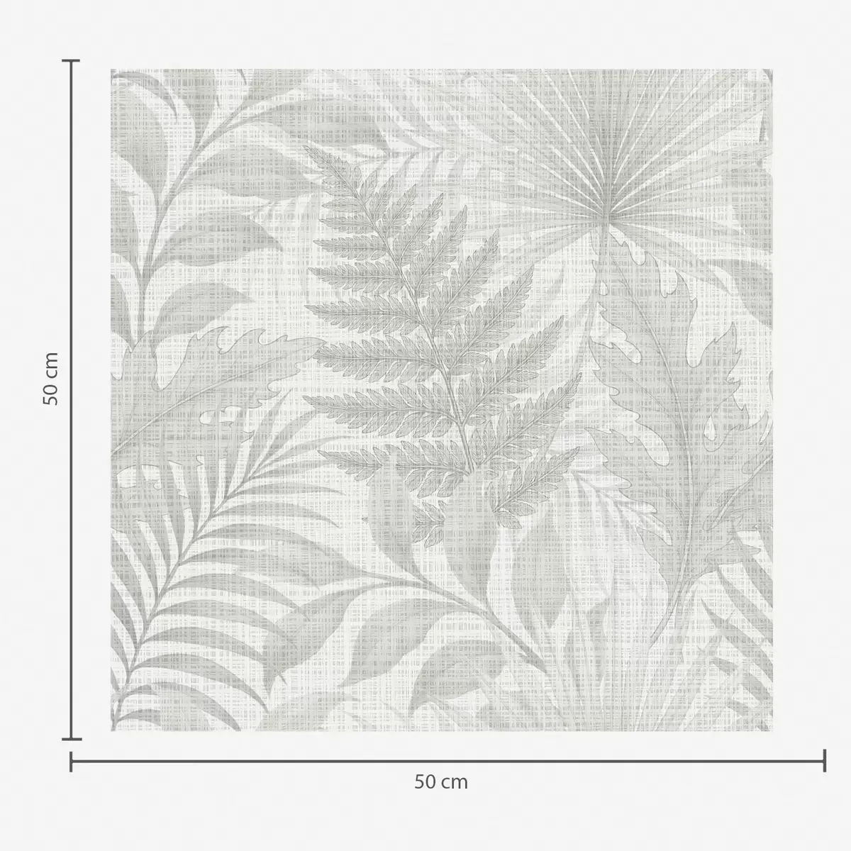 Wallpapers Soft tropical leaves in pale grey on linen texture Nr. a00899