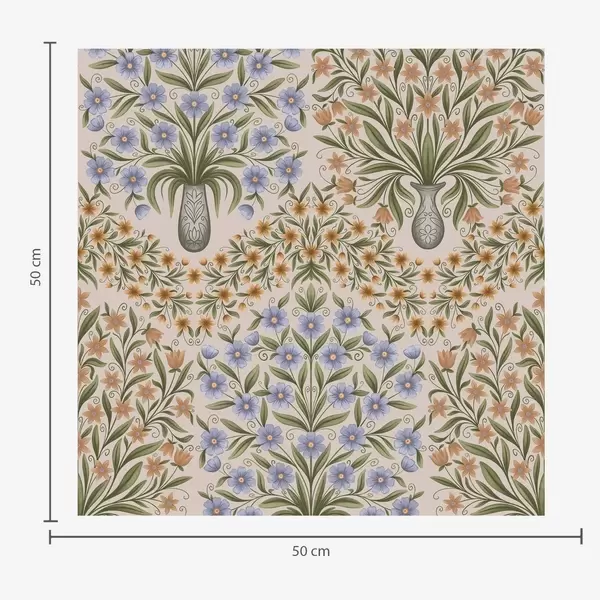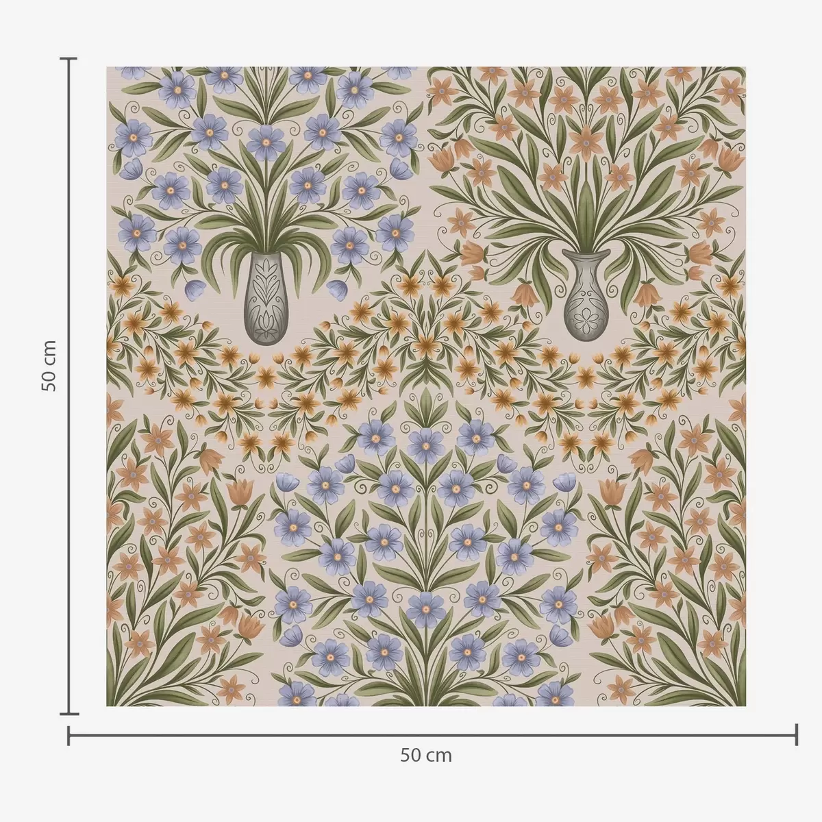 Wallpapers Alternating vases and blue florals in sage on blush Nr. a00901