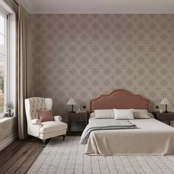 Wallpapers Cocoa linework grids with small central crosses, beige Nr. a00911