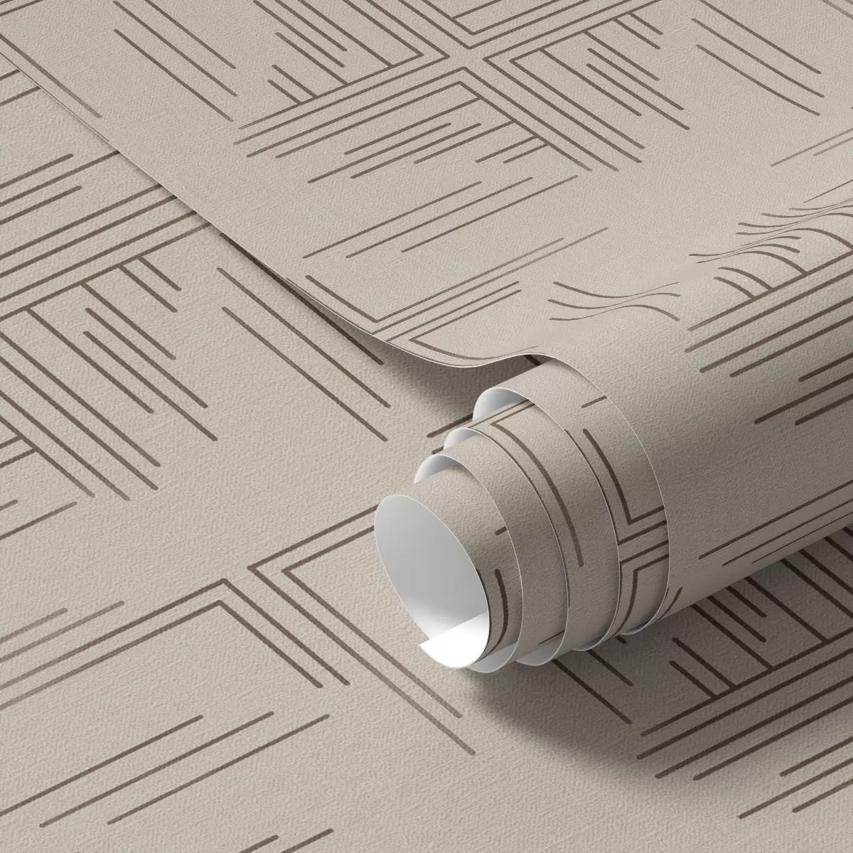 Wallpapers Offset cocoa corner blocks with scattered line accents, beige Nr. a00912