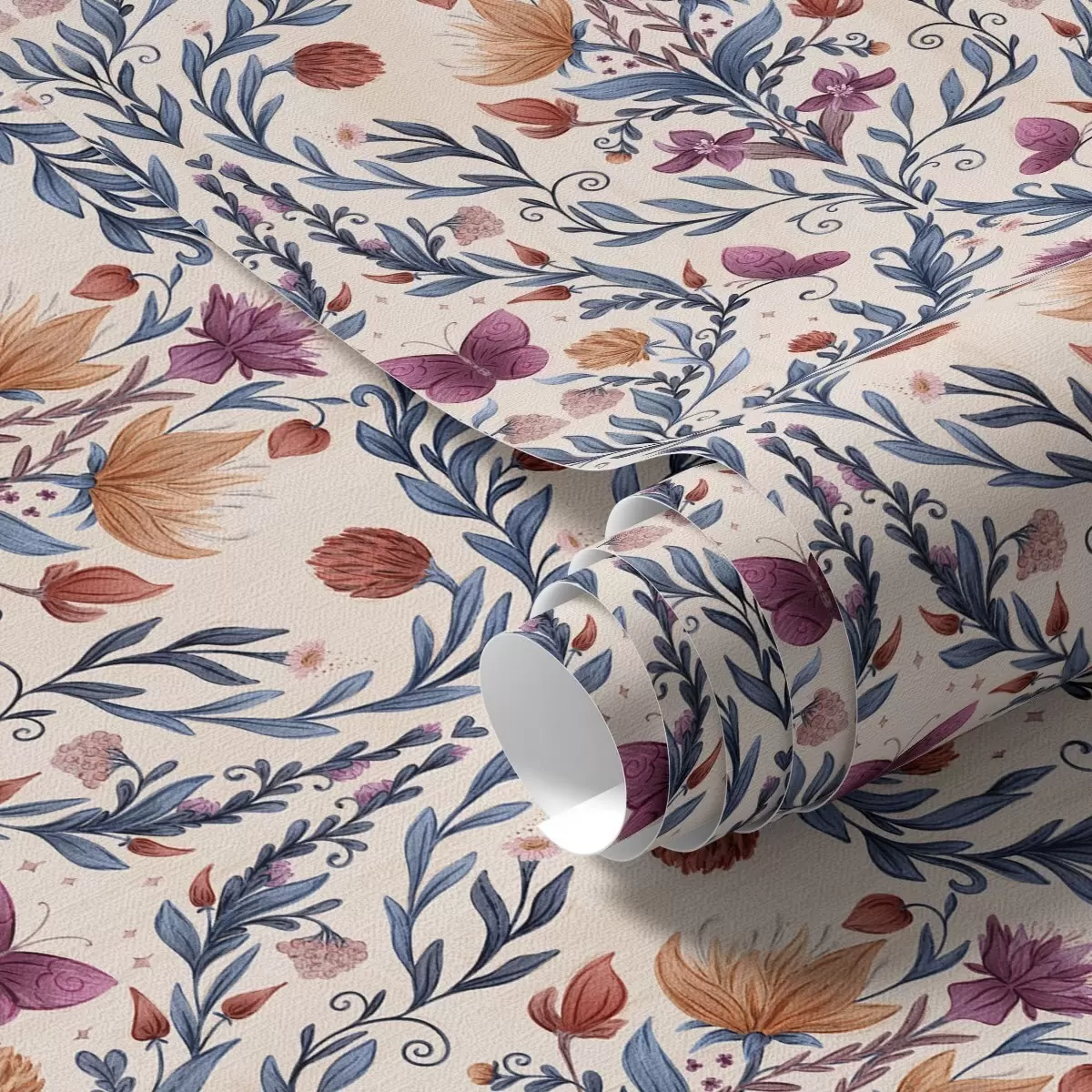 Wallpapers Floral damask with butterflies on soft peach background Nr. a00926