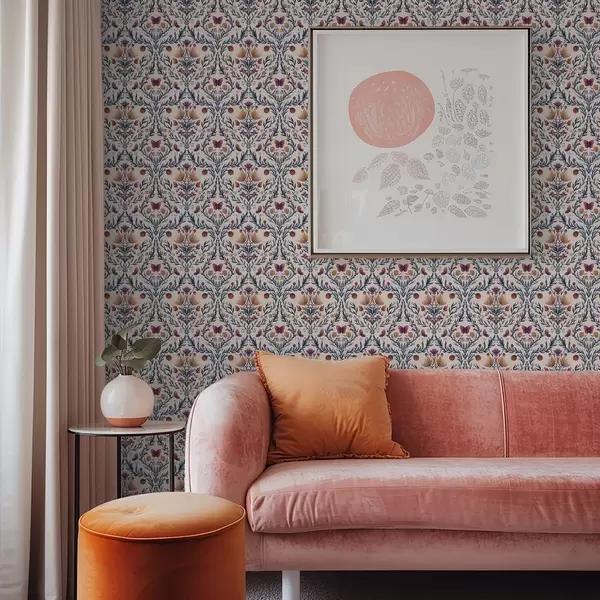 Wallpapers Floral damask with butterflies on soft peach background Nr. a00926