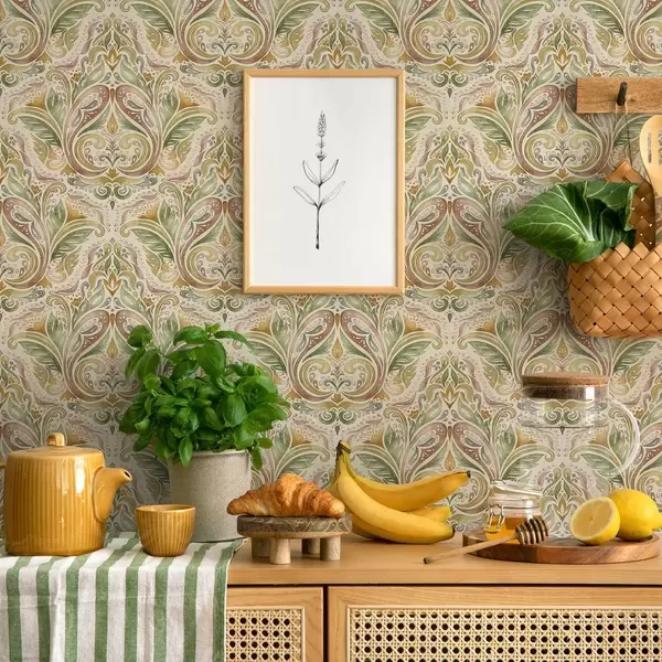 Wallpapers Watercolour leafy swirls in green and warm ochre tones Nr. a00927