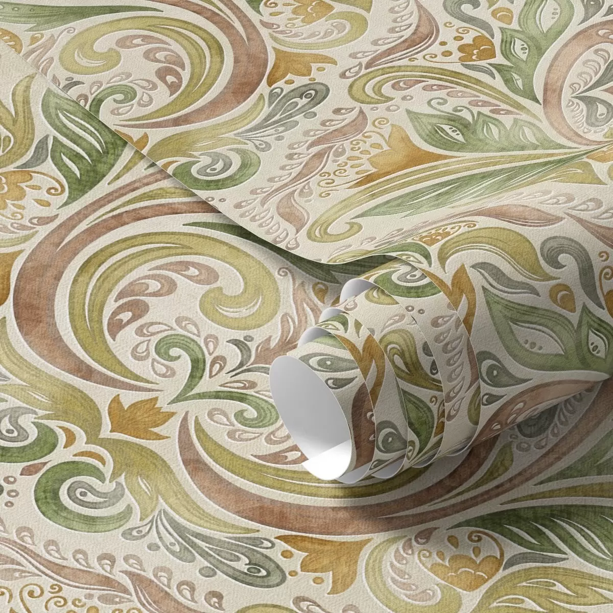 Wallpapers Watercolour leafy swirls in green and warm ochre tones Nr. a00927