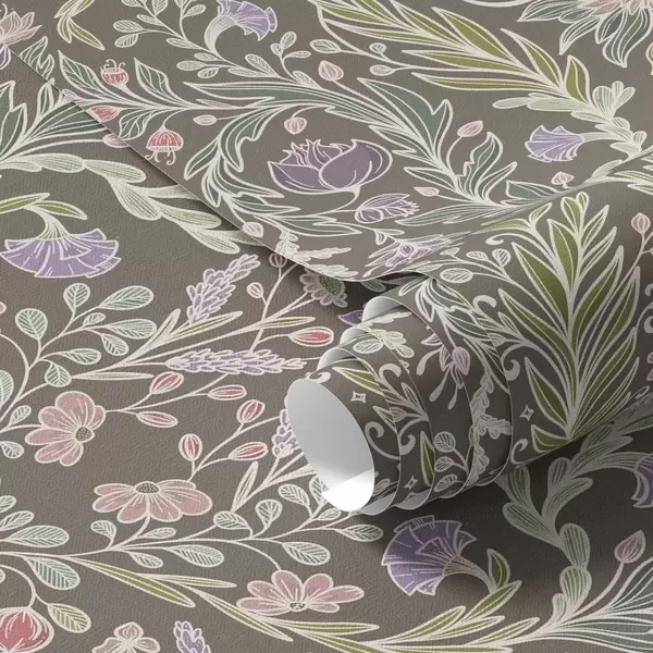 Wallpapers Symmetrical flowers and leaves on a brownish-grey background Nr. a00928v2