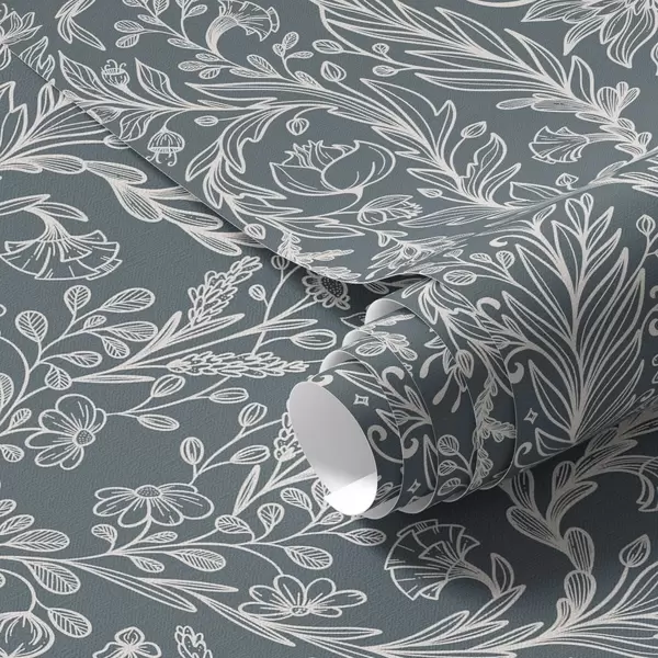 Wallpapers Linear floral ornament on a bluish-grey background Nr. a00929v1