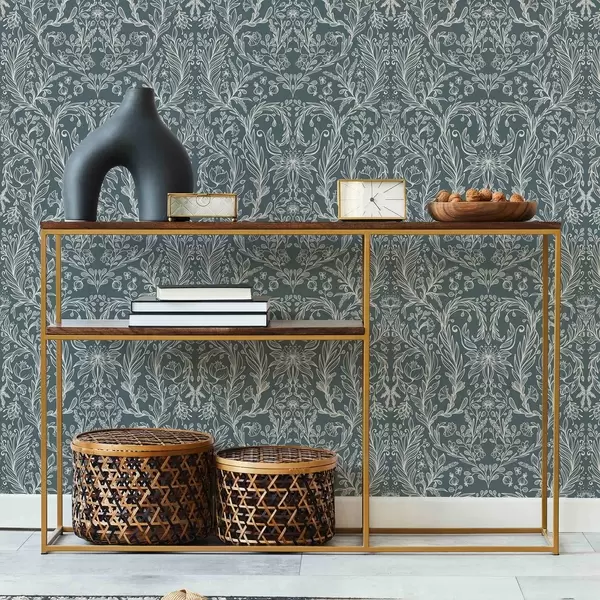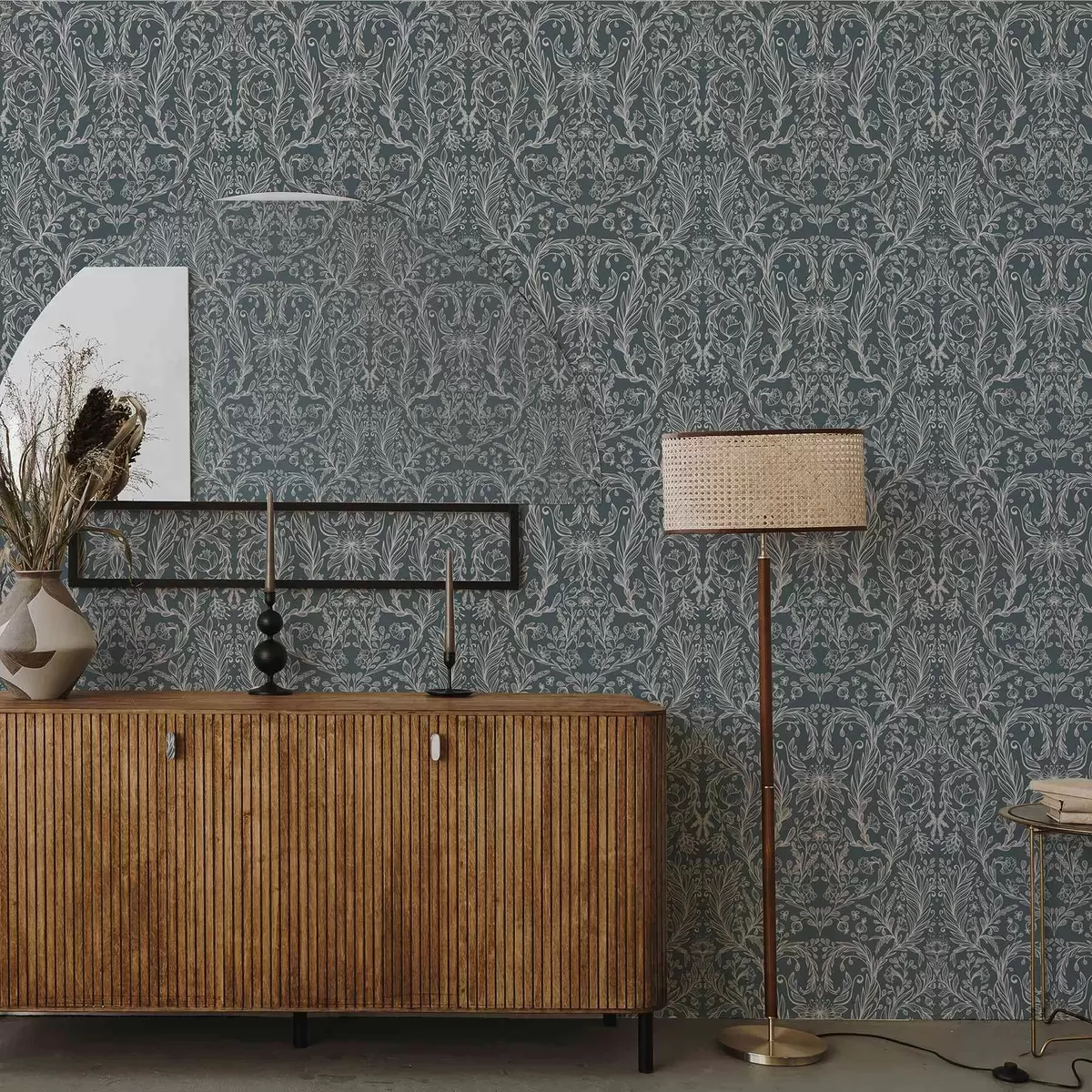 Wallpapers Linear floral ornament on a bluish-grey background Nr. a00929v1