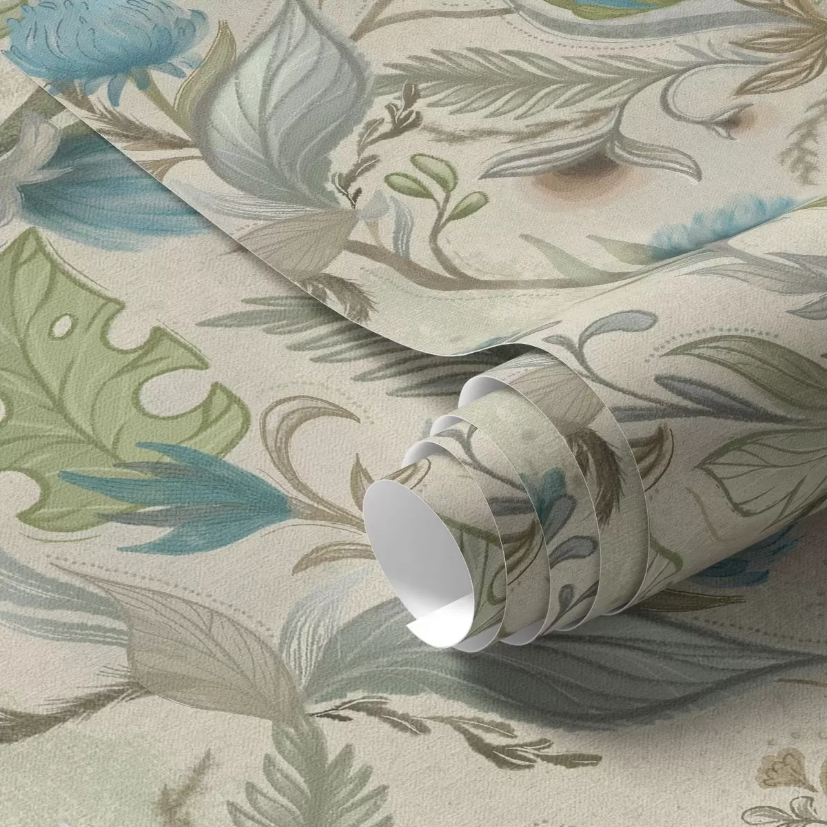 Wallpapers Blue buds and leaves on a light beige background Nr. a00930