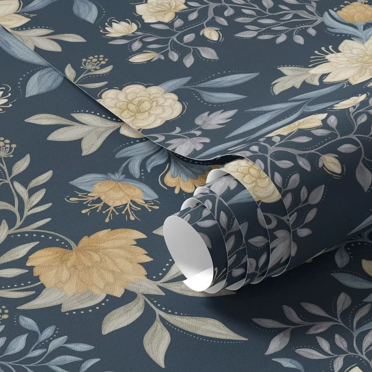 Wallpapers Yellow and blue flowers on a dark evening blue background Nr. a00934v1