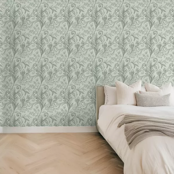 Wallpapers Soft mint curled leaves in delicate grey-green lines Nr. a00935v3