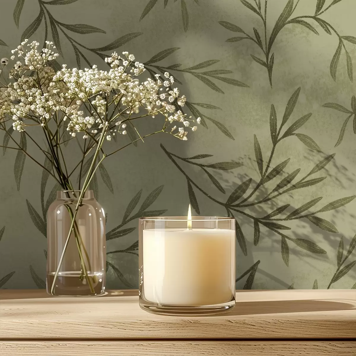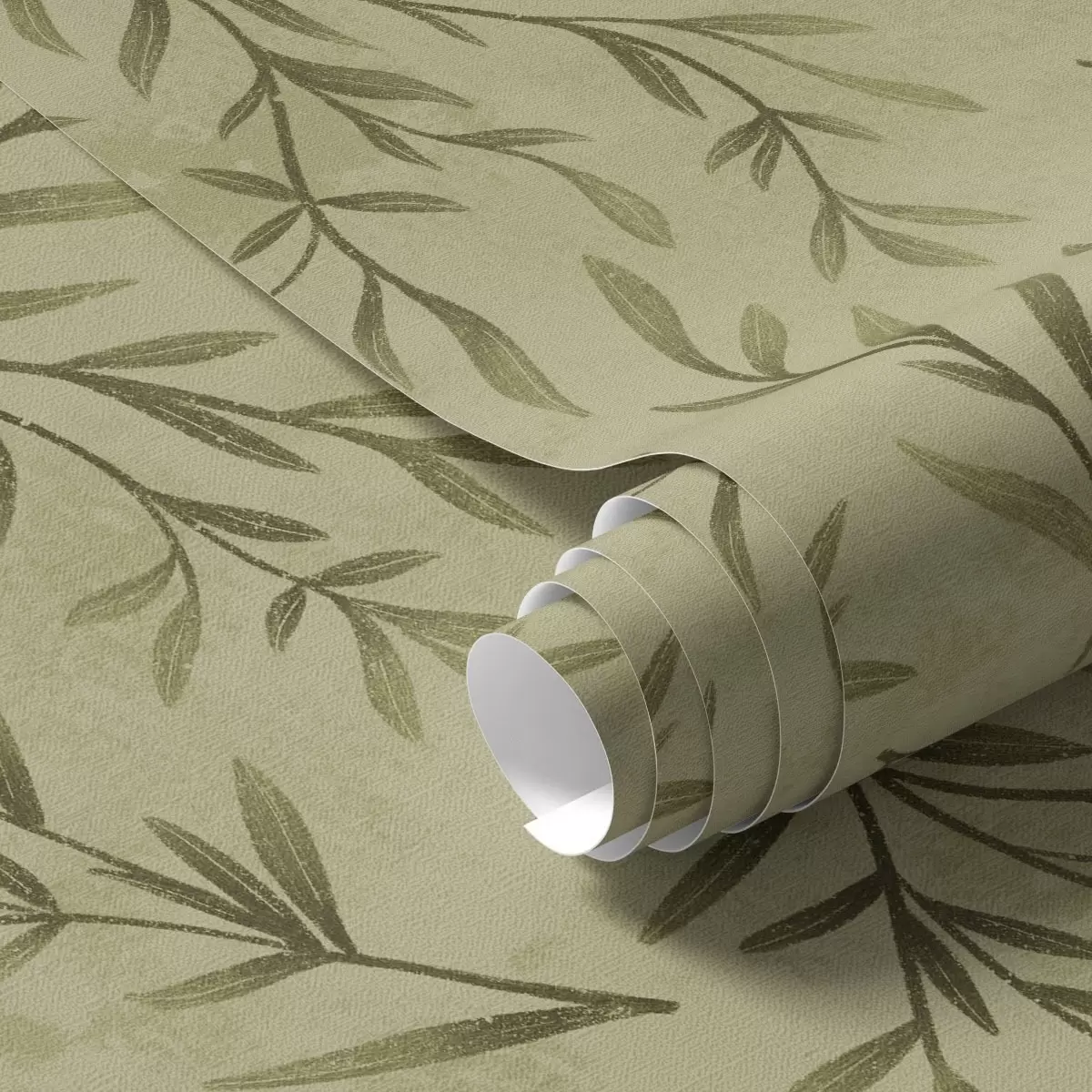 Wallpapers Olive sprigs on a muted yellow-green textured ground Nr. a00936