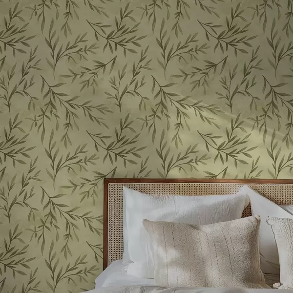 Wallpapers Olive sprigs on a muted yellow-green textured ground Nr. a00936