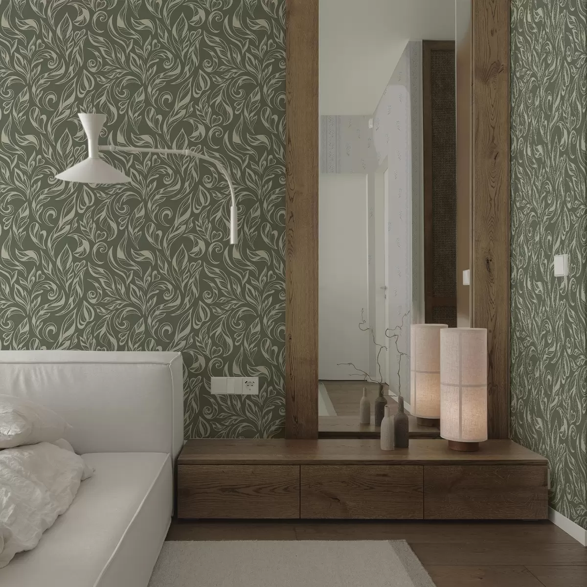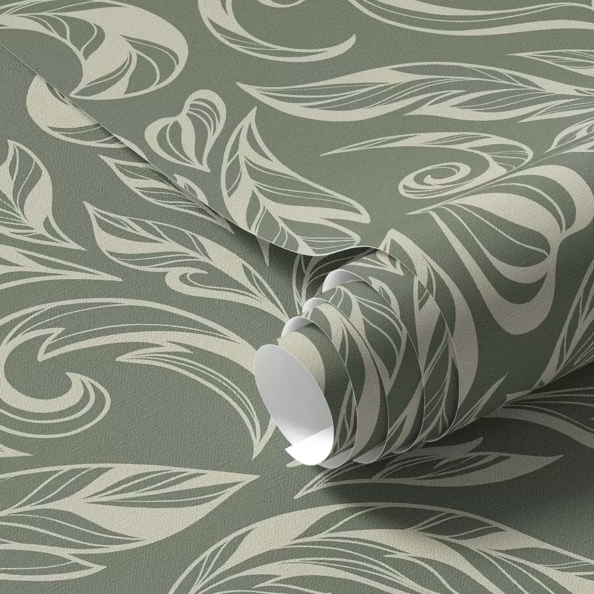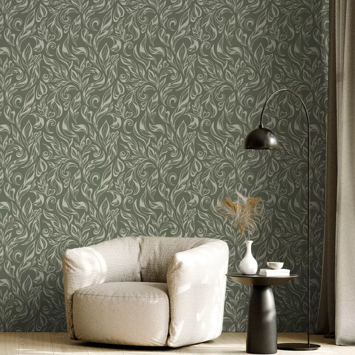 Wallpapers Cream leafy ornament on a greenish-grey background Nr. a00940v2