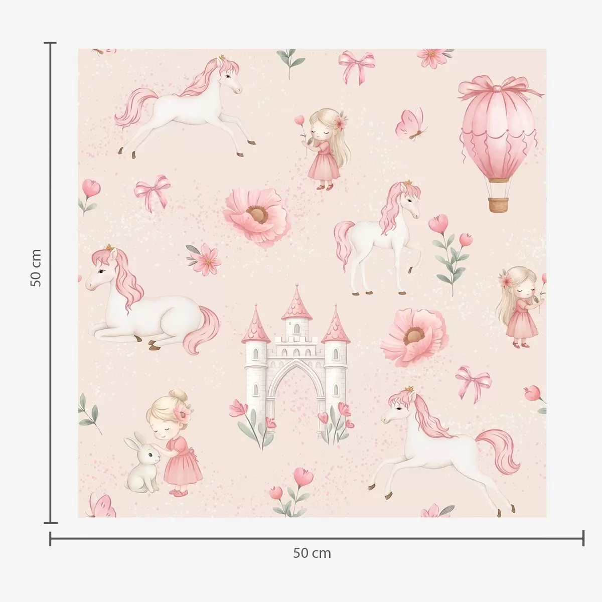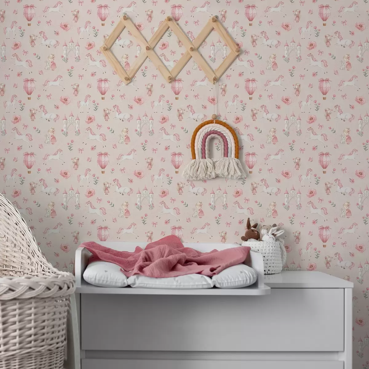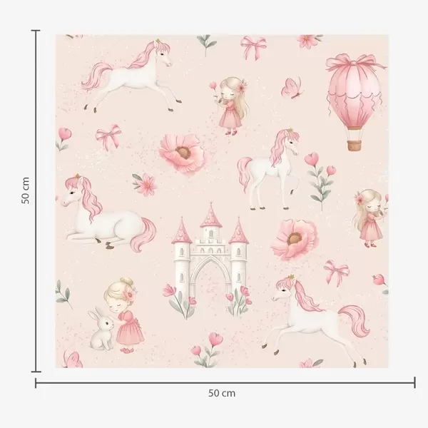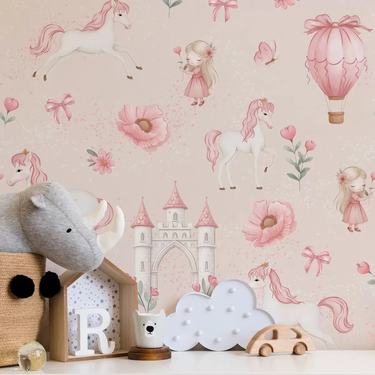 Wallpapers Pink unicorns, little girls and a castle on a soft background Nr. a00957