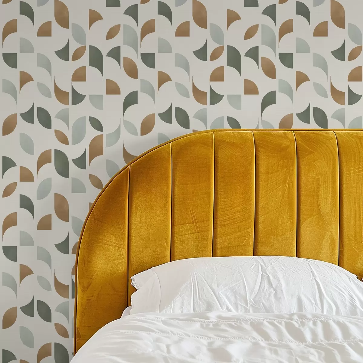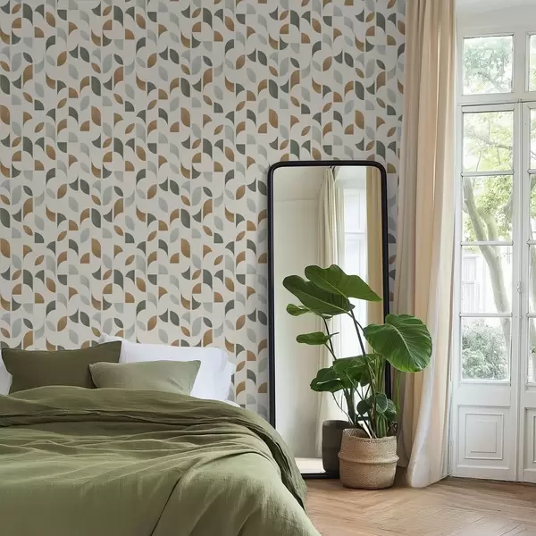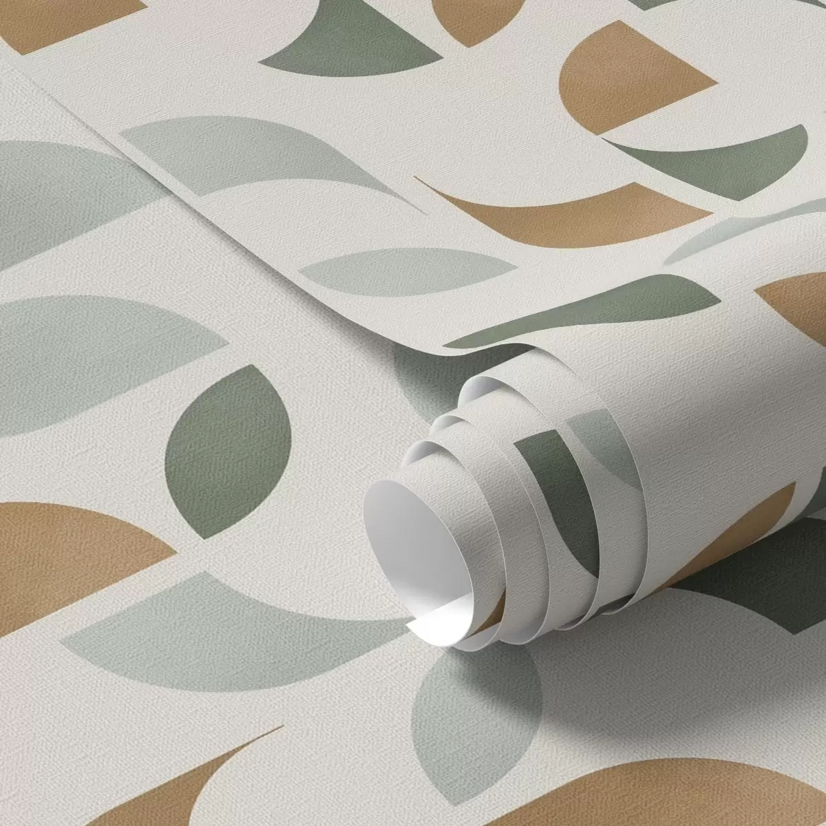 Wallpapers Abstract half circles and leaves in green and terracotta Nr. a00985