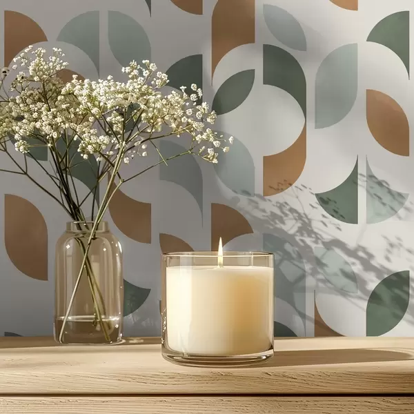 Wallpapers Vertical columns of half circles and leaves, green-terracotta Nr. a00986