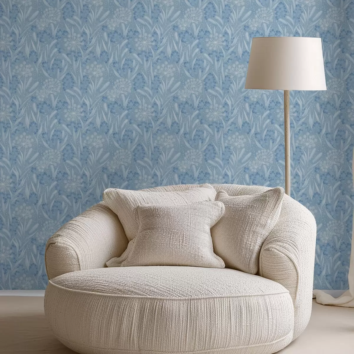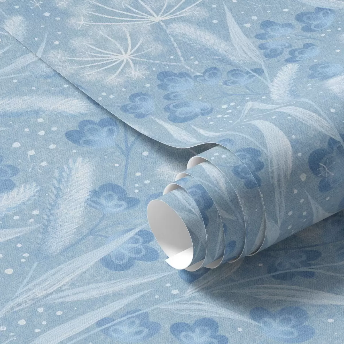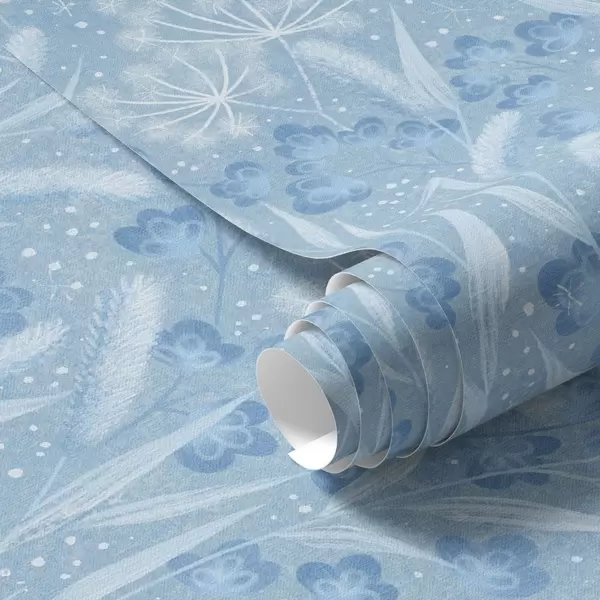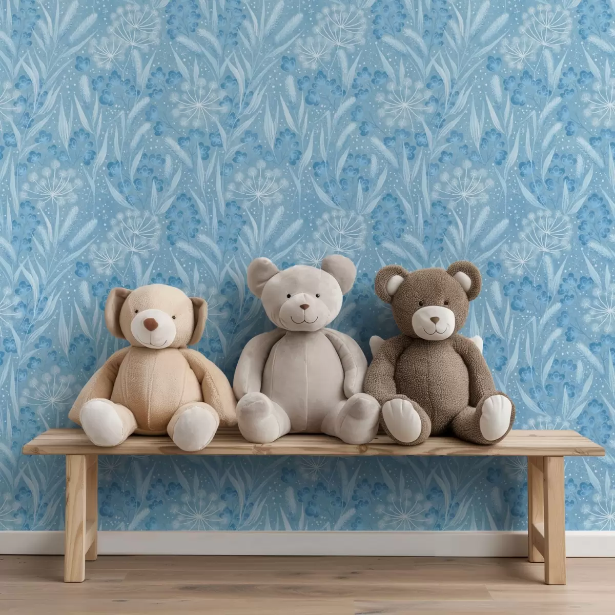 Wallpapers Frosty blue meadow with dandelion seeds and tiny flowers Nr. a00995