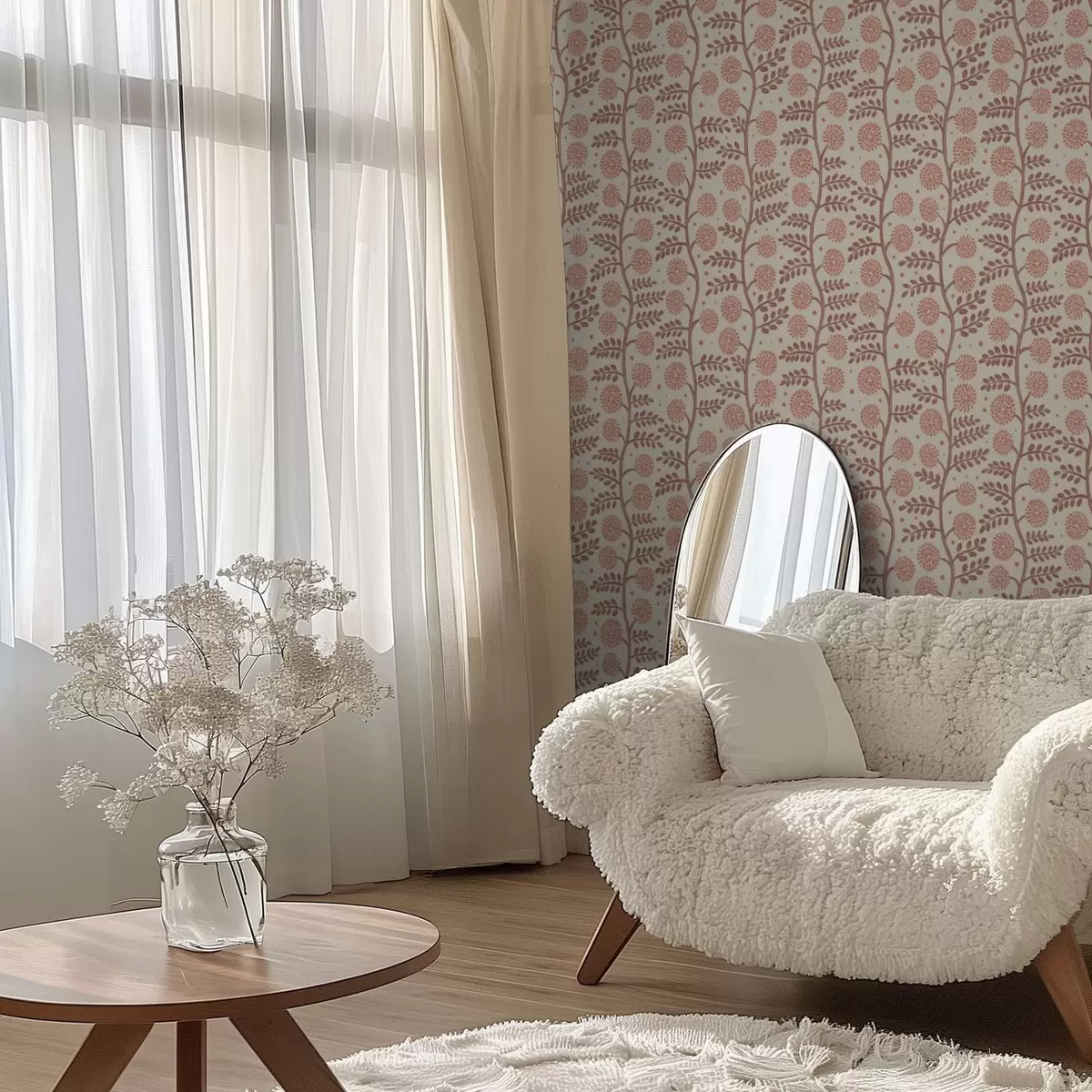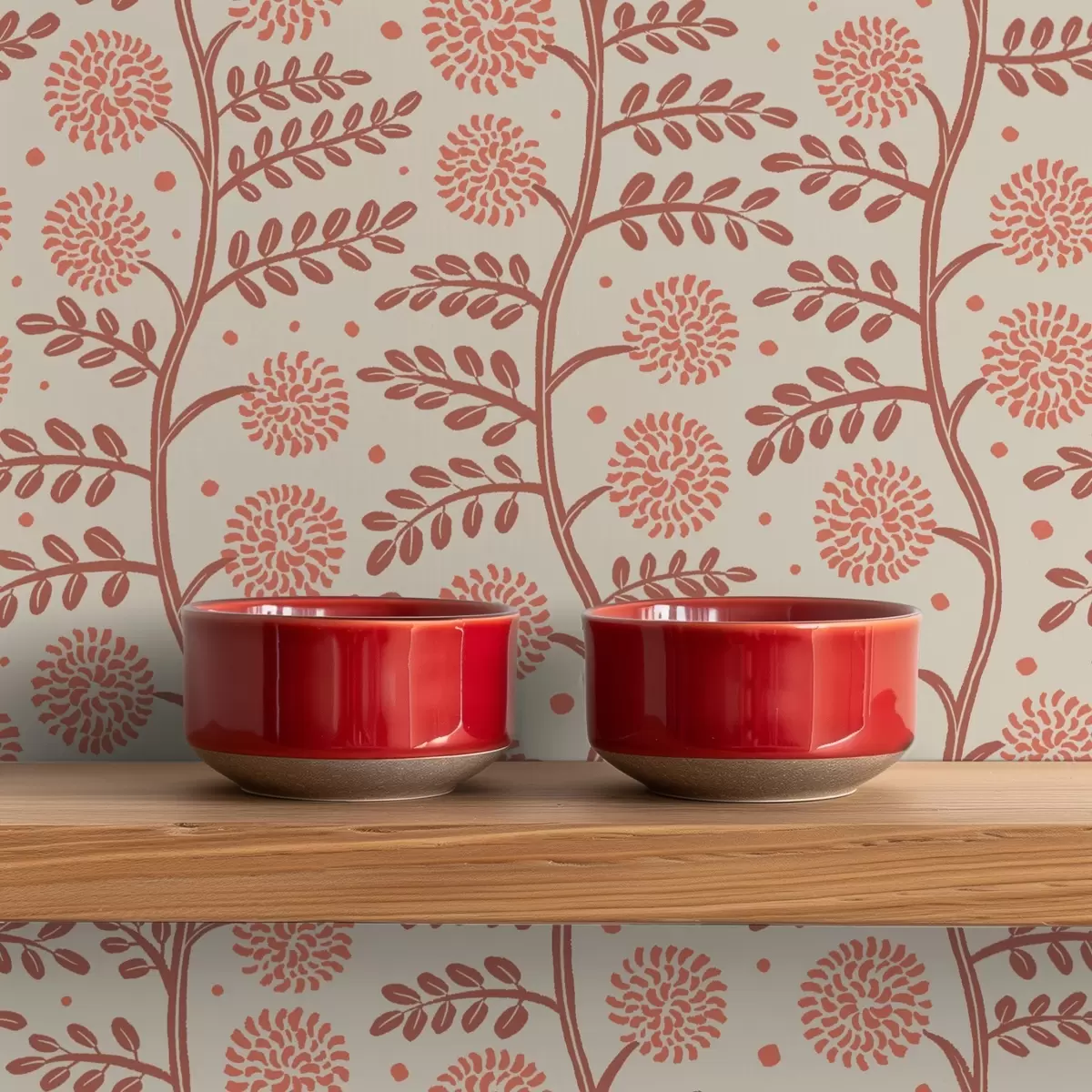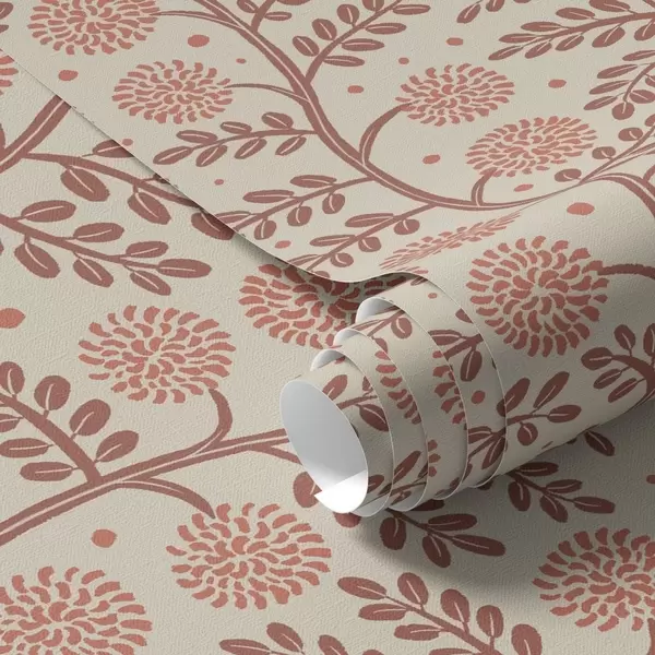 Wallpapers Terracotta stems with coral fluffy flowers on a cream background Nr. a00997v1