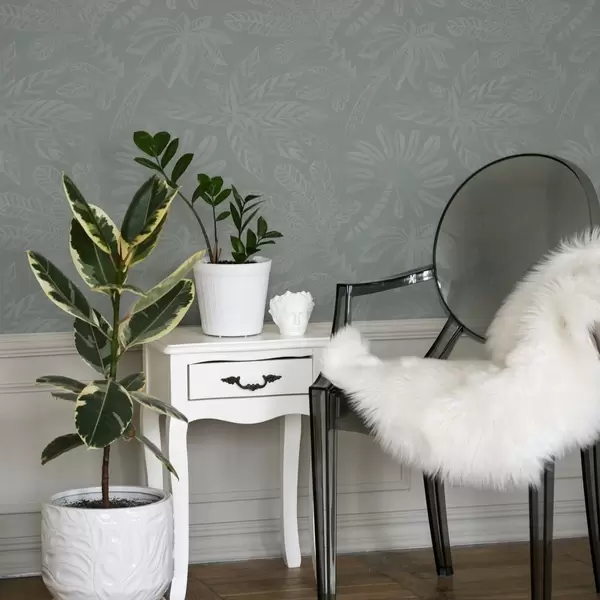 Wallpapers Matte large tropical leaves in a mint-grey palette Nr. a01001