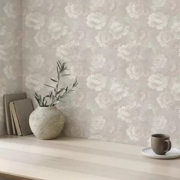 Wallpapers Faded peonies on linen texture in a soft beige palette Nr. a01018