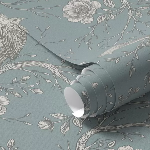 Wallpapers Contour-drawn birds on branches, muted blue background Nr. a01022