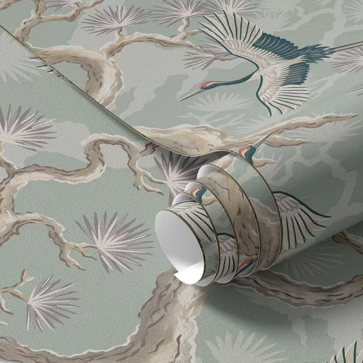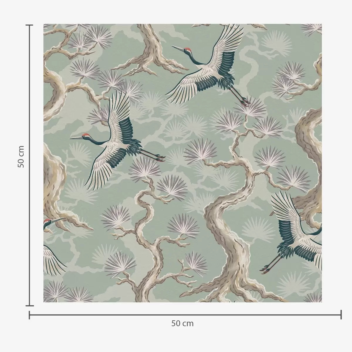 Wallpapers Cranes among curved branches on a soft sage-coloured background Nr. a01023