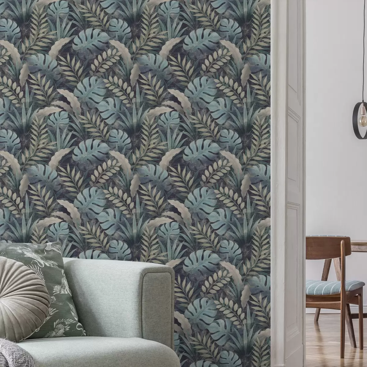 Wallpapers Tropical foliage in cool blue-green tones Nr. a01035