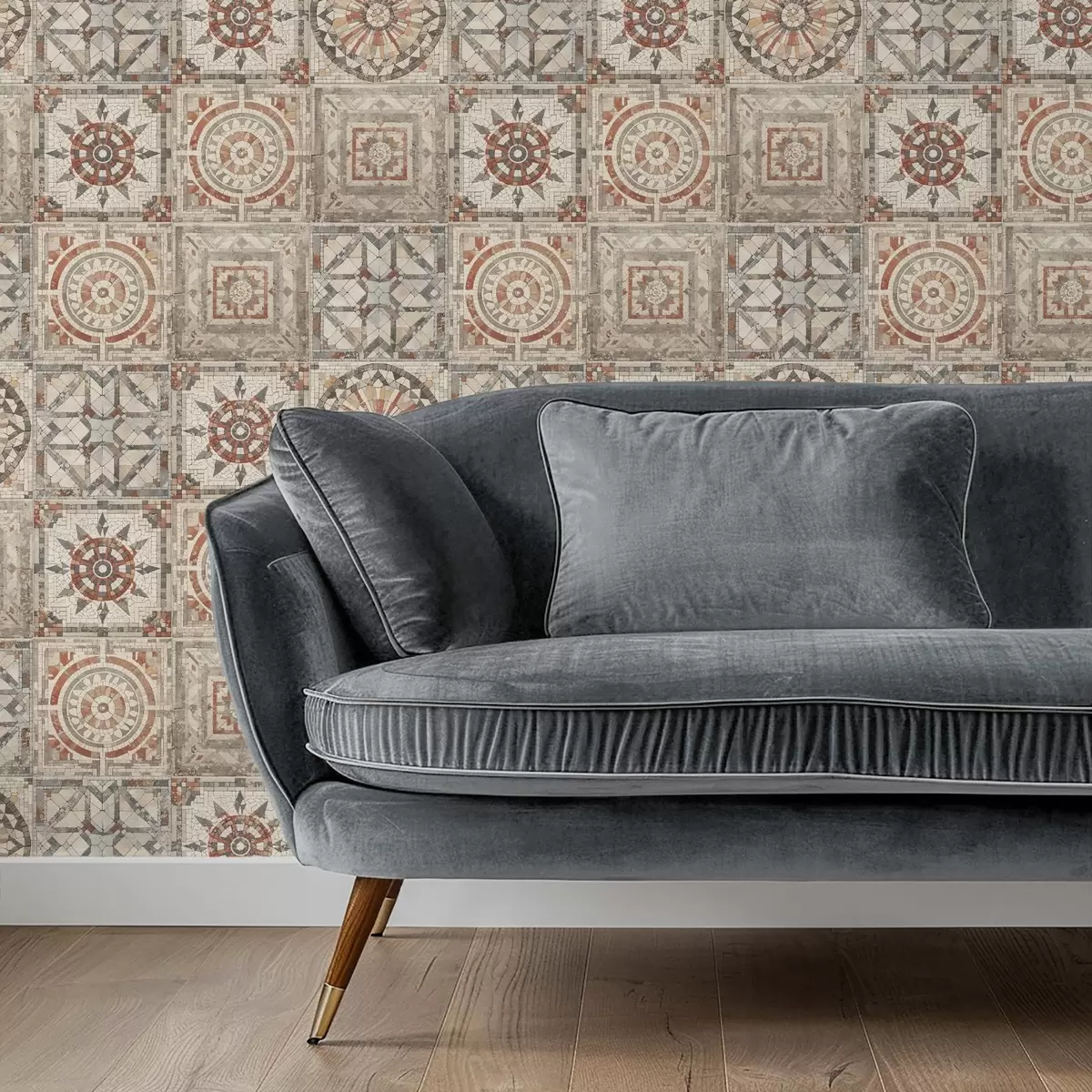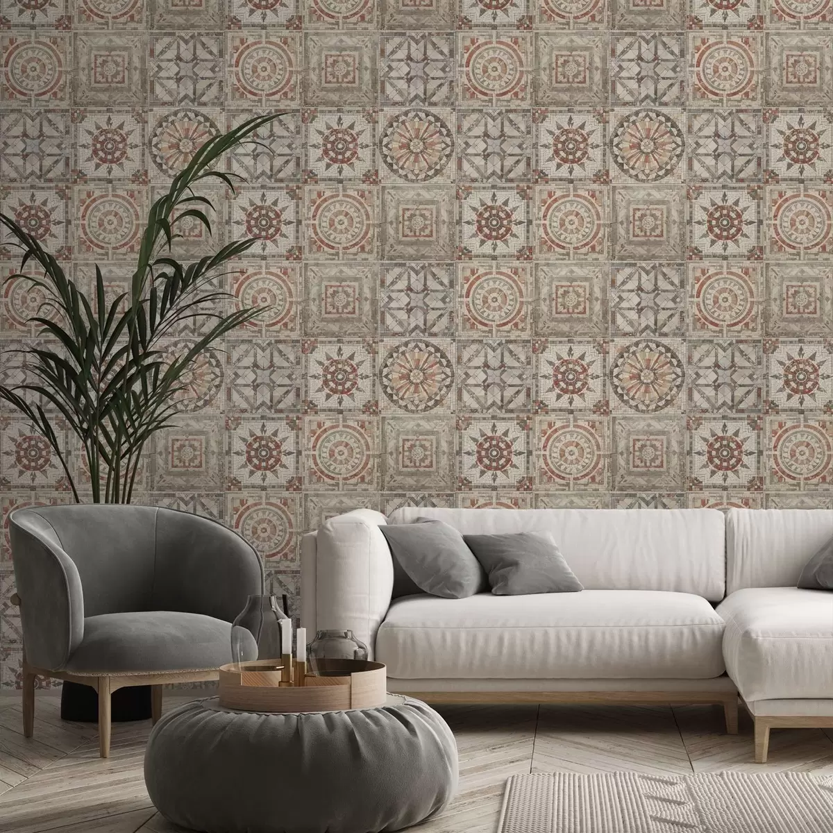 Wallpapers Old stone mosaic medallions with worn details Nr. a01042