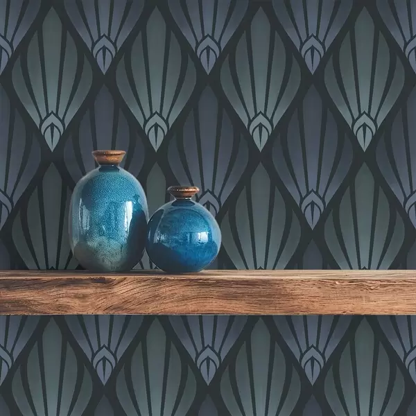Wallpapers Cool blue-grey Art Deco with fan-shaped forms Nr. a01064v3