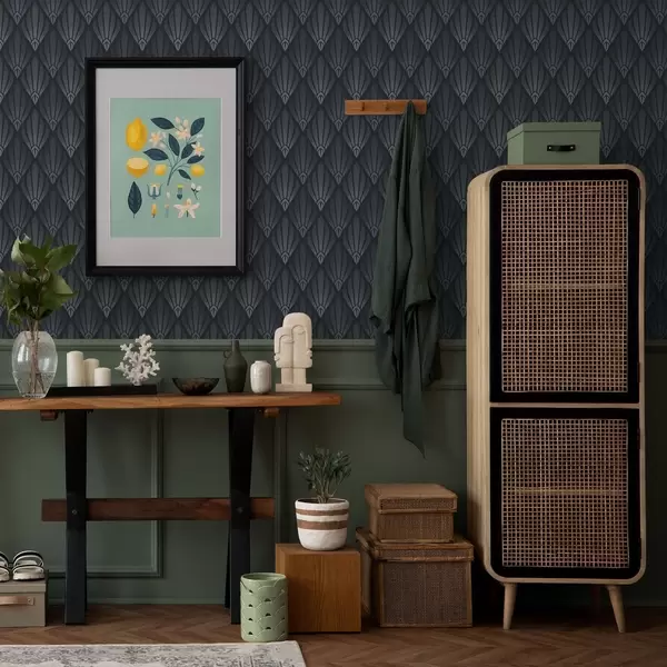 Wallpapers Cool blue-grey Art Deco with fan-shaped forms Nr. a01064v3