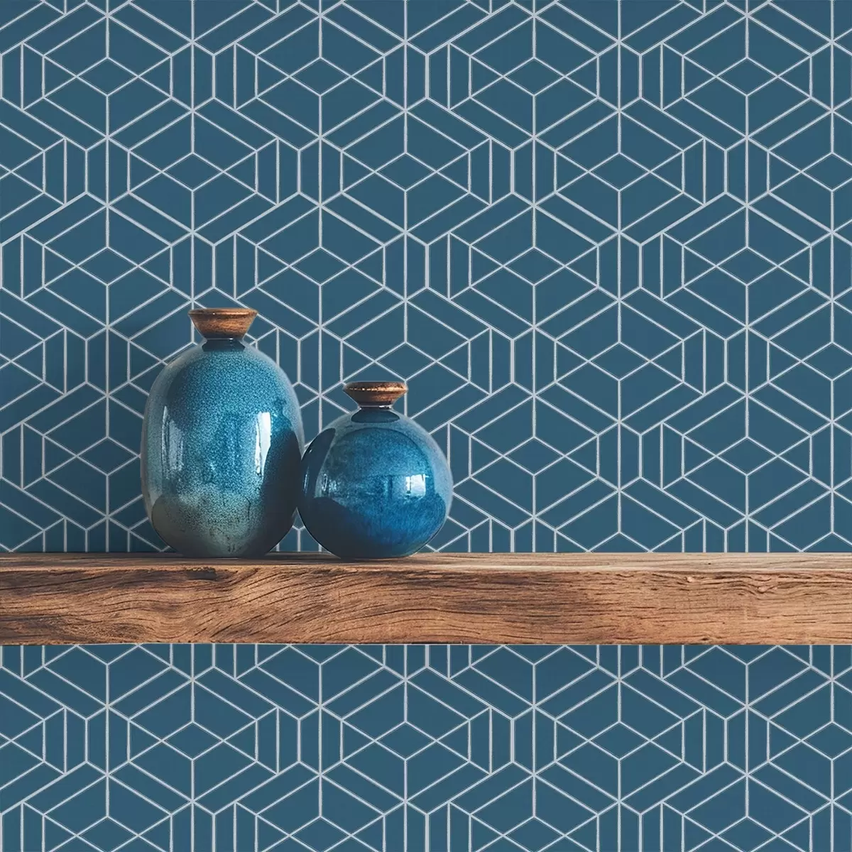 Wallpapers Blue background with white linear cubes in a grid Nr. a01067v1