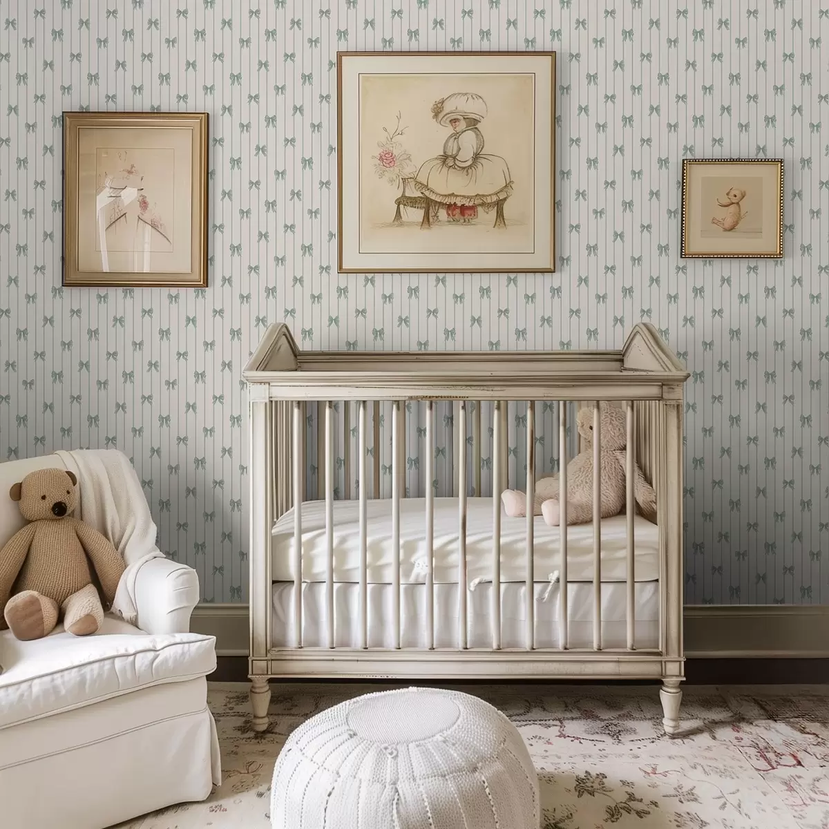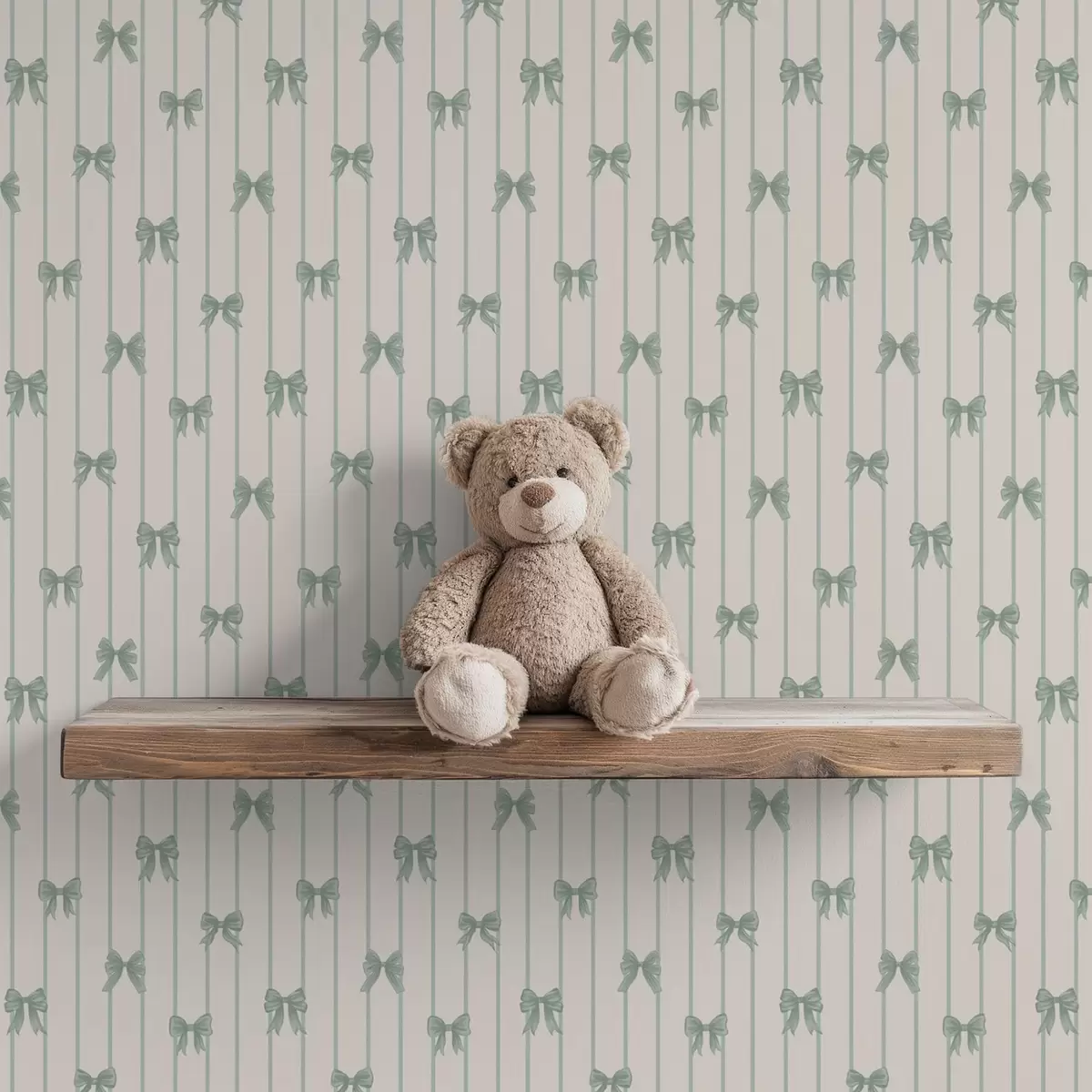 Wallpapers Small green bows in stripes on beige background Nr. a01076v2