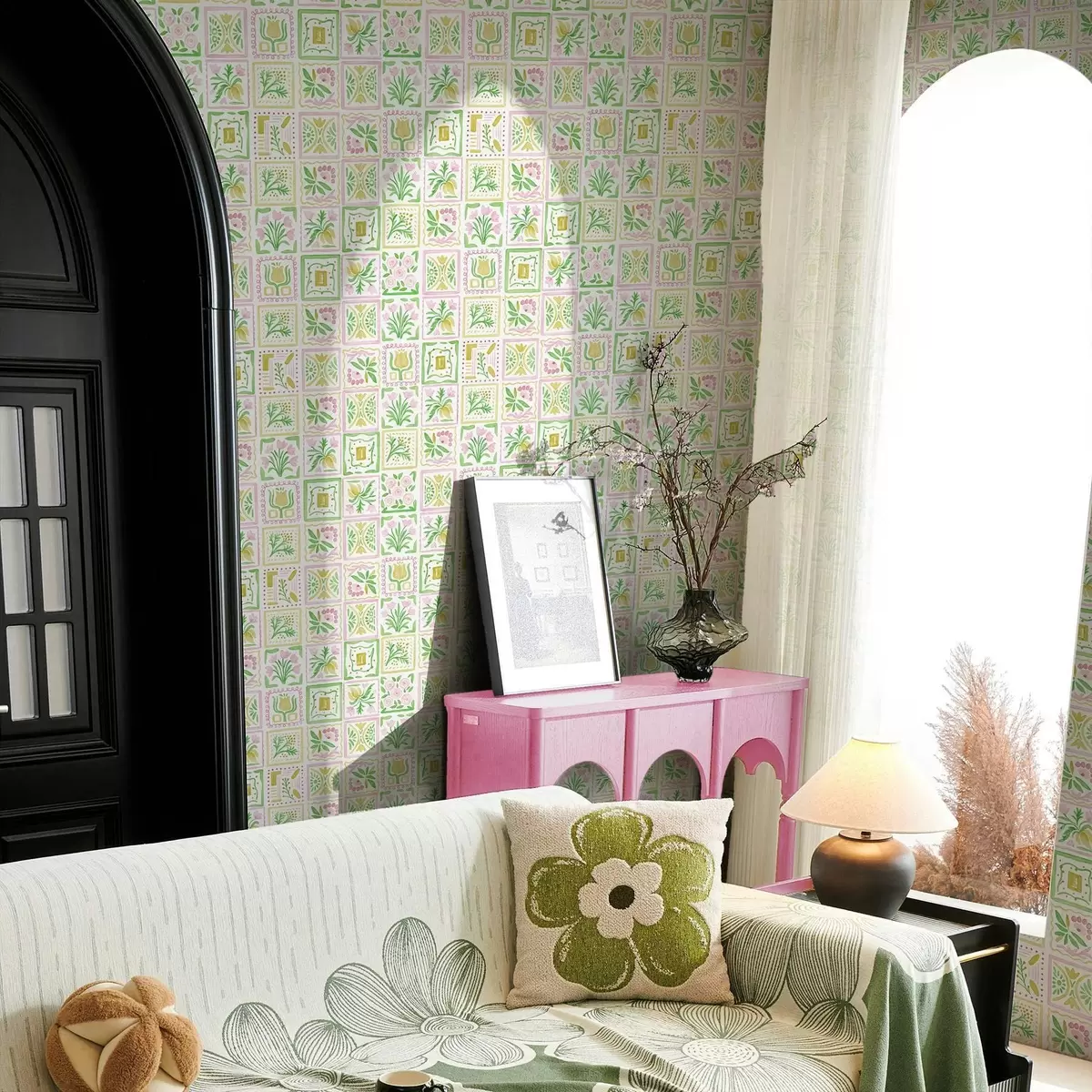 Wallpapers Watercolour squares with pink and green branches Nr. a01082